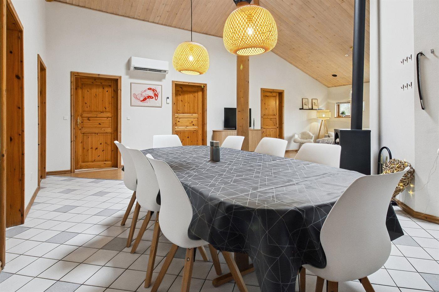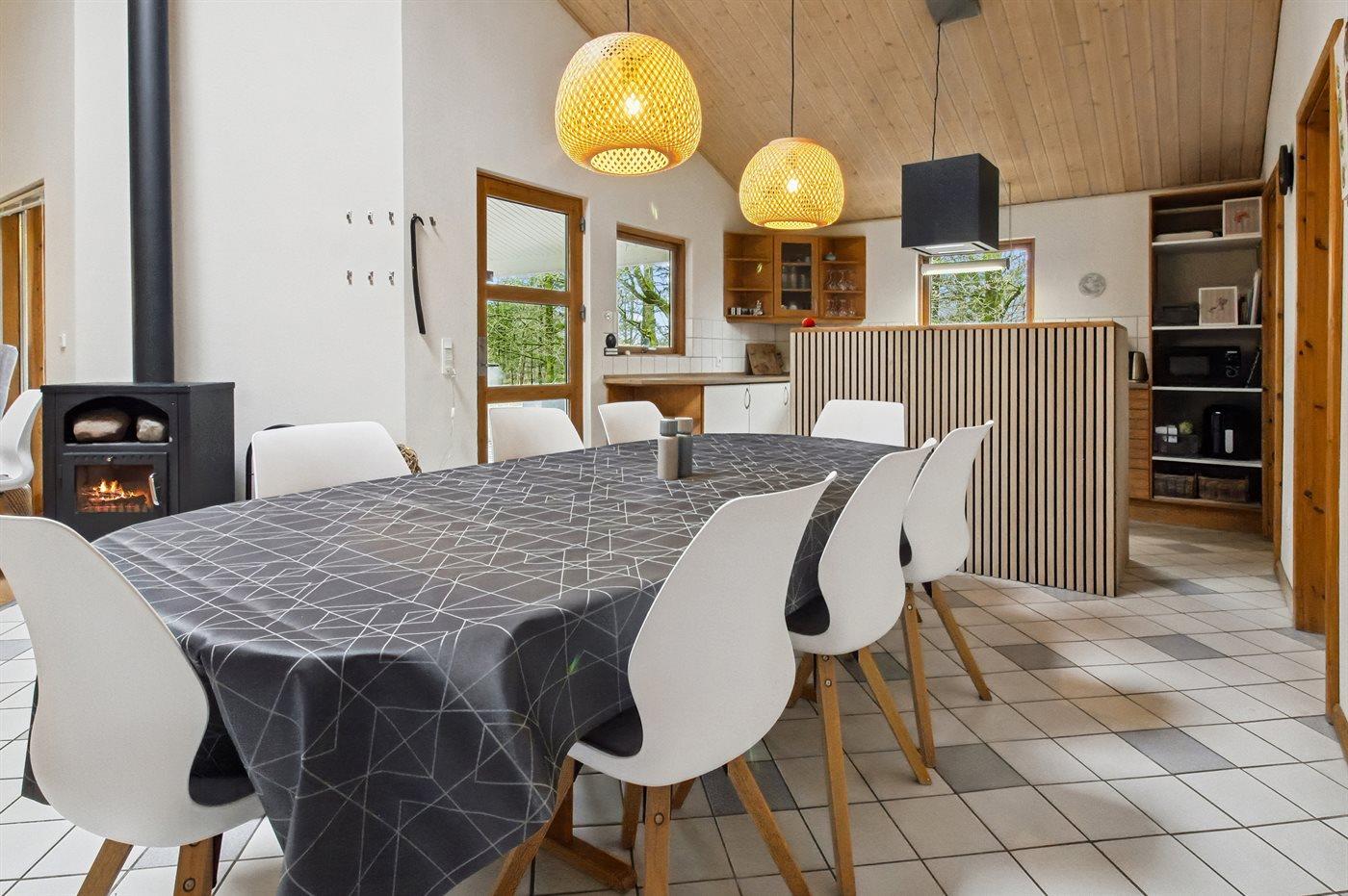 Sommerhuset egner sig til 8 personer. Ferieboligen er på 120 m² og er bygget i 2001. Det er ikke tilladt at medbringe husdyr. Ferieboligen har vaskemaskine. Tørretumbler. Frysekapacitet på 99 liter. Der er desuden brændeovn. Til de små er der 1 stk. barnestol.
