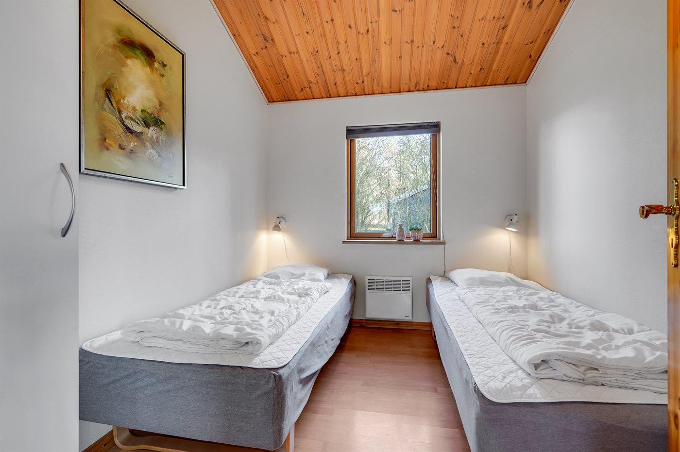 Der er i alt 4 soveværelser. Sovepladserne fordeler sig på: 4 sovepladser i dobbeltsenge. 4 sovepladser i enkeltsenge.