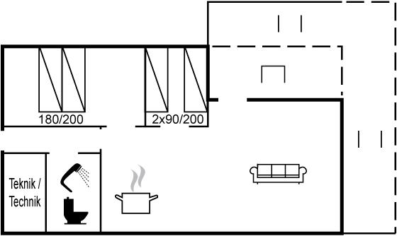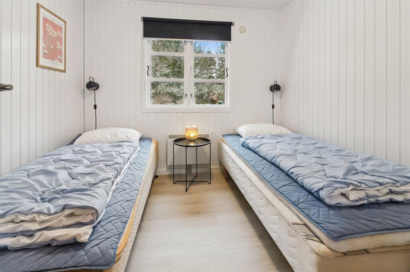 Der er i alt 2 soveværelser. Sovepladserne fordeler sig på: 2 sovepladser i dobbeltseng. 2 sovepladser i enkeltsenge. Derudover er der 1 stk. barneseng.