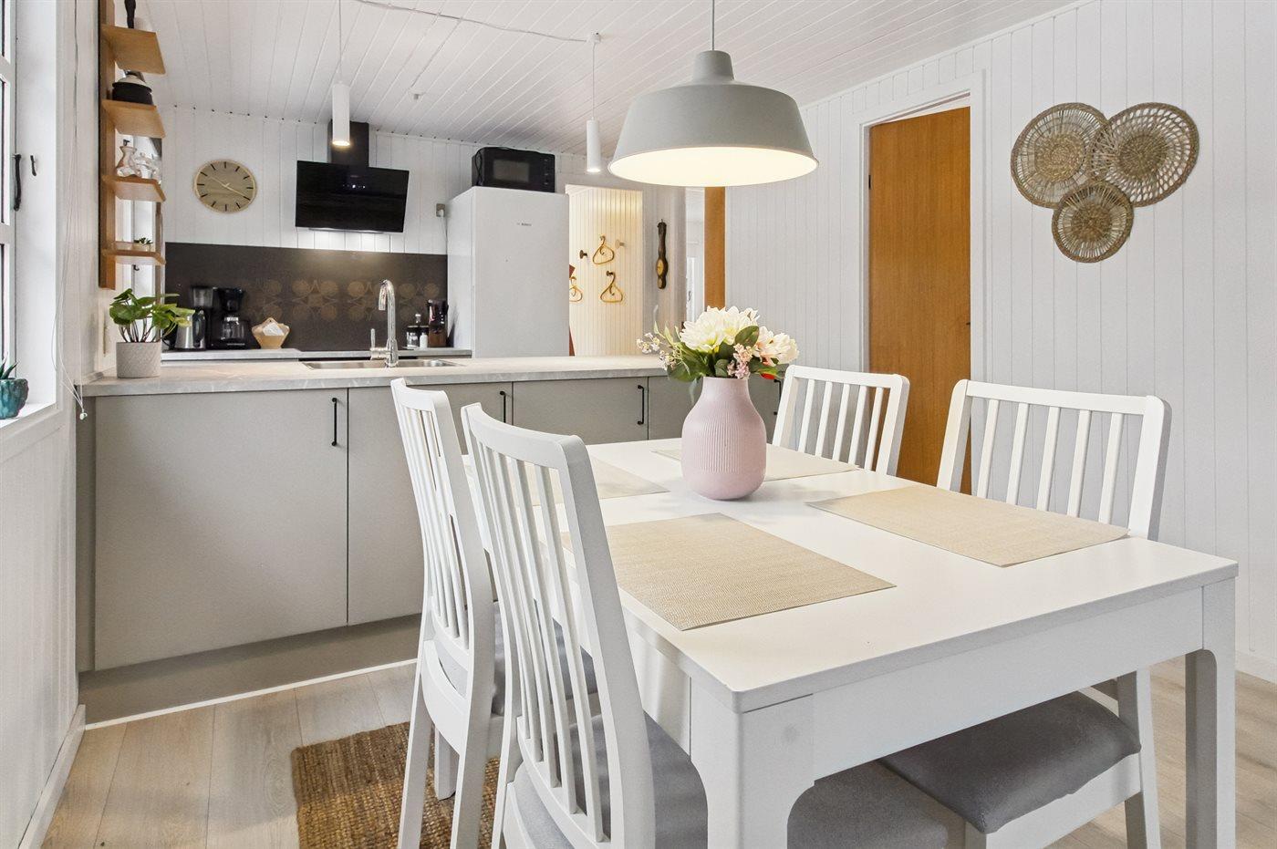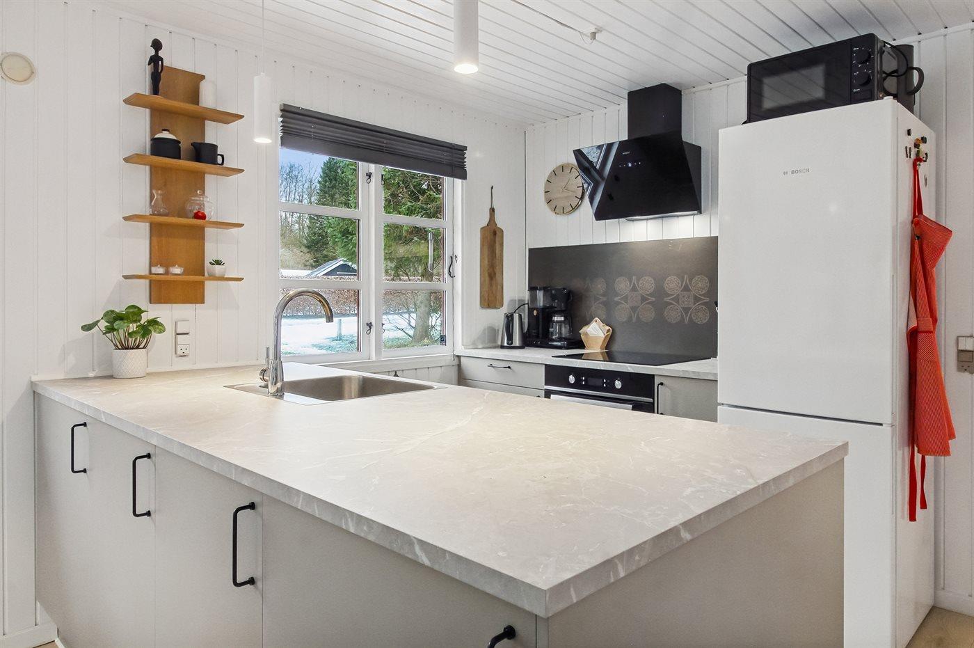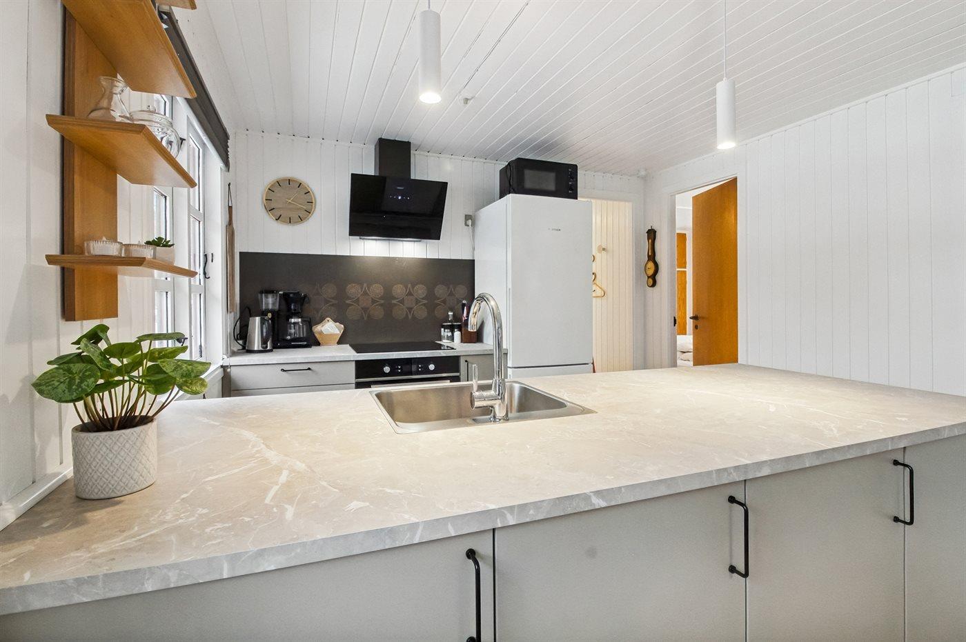 Køkkenet er udstyret med 1 køleskab. Der er 4 induktionskogeplader, bageovn, mikrobølgeovn samt opvaskemaskine.