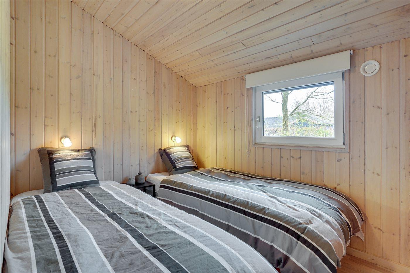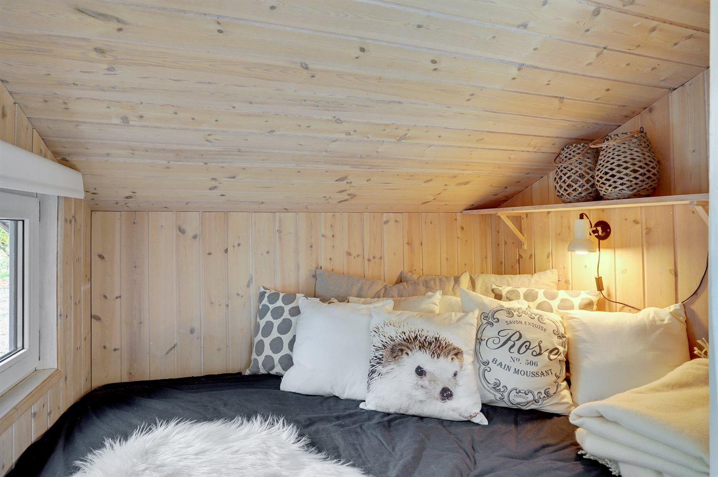 Der er i alt 2 soveværelser. Sovepladserne fordeler sig på: 2 sovepladser i dobbeltseng. 2 sovepladser i enkeltsenge. 2 sovepladser i alkove. Derudover er der 1 stk. barneseng.