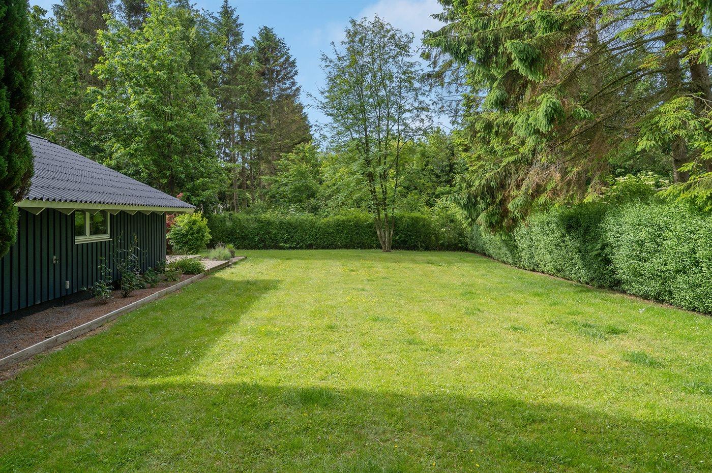 Dette velholdte sommerhus er beliggende på en ugenert naturgrund med græsplæne samt en stor og dejlig, sydvendt træterrasse.