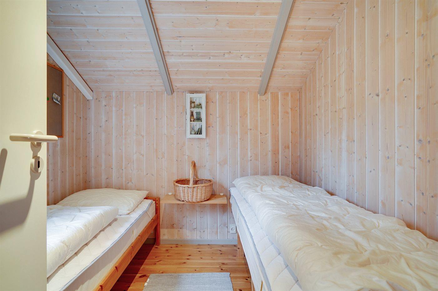 Der er i alt 2 soveværelser. Sovepladserne fordeler sig på: 2 sovepladser i dobbeltseng. 1 soveplads i enkeltseng. Derudover er der 1 stk. barneseng.