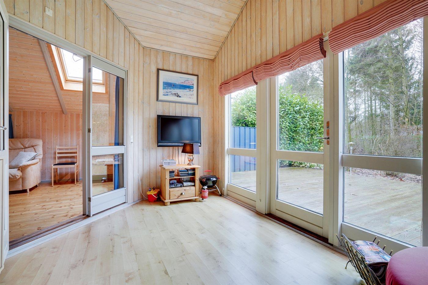 Hyggeligt sommerhus på 64 m² med stor sydvendt terrasse og naturgrund i Arrild nær Toftlund.