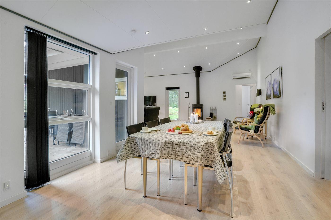 Et velindrettet luksussommerhus, som er fremstillet af de bedste materialer. Huset har 2 badeværelser, hvoraf det ene indeholder et stort, indbygget spabad til 2 personer og sauna. Stuen er smagfuldt indrettet med kvalitetsmøbler og brændeovn, alt dette er med til at skabe den rette atmosfære. Omkring huset er der anlagt terrasser, hvor solen og naturen kan nydes i fulde drag.