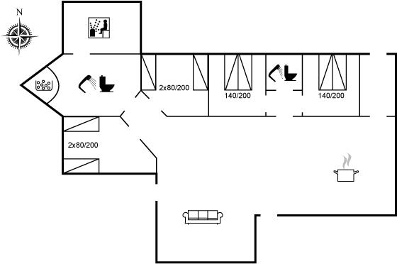 Der er i alt 4 soveværelser. Sovepladserne fordeler sig på: 4 sovepladser i dobbeltsenge. 4 sovepladser i enkeltsenge. Derudover er der 1 stk. barneseng.