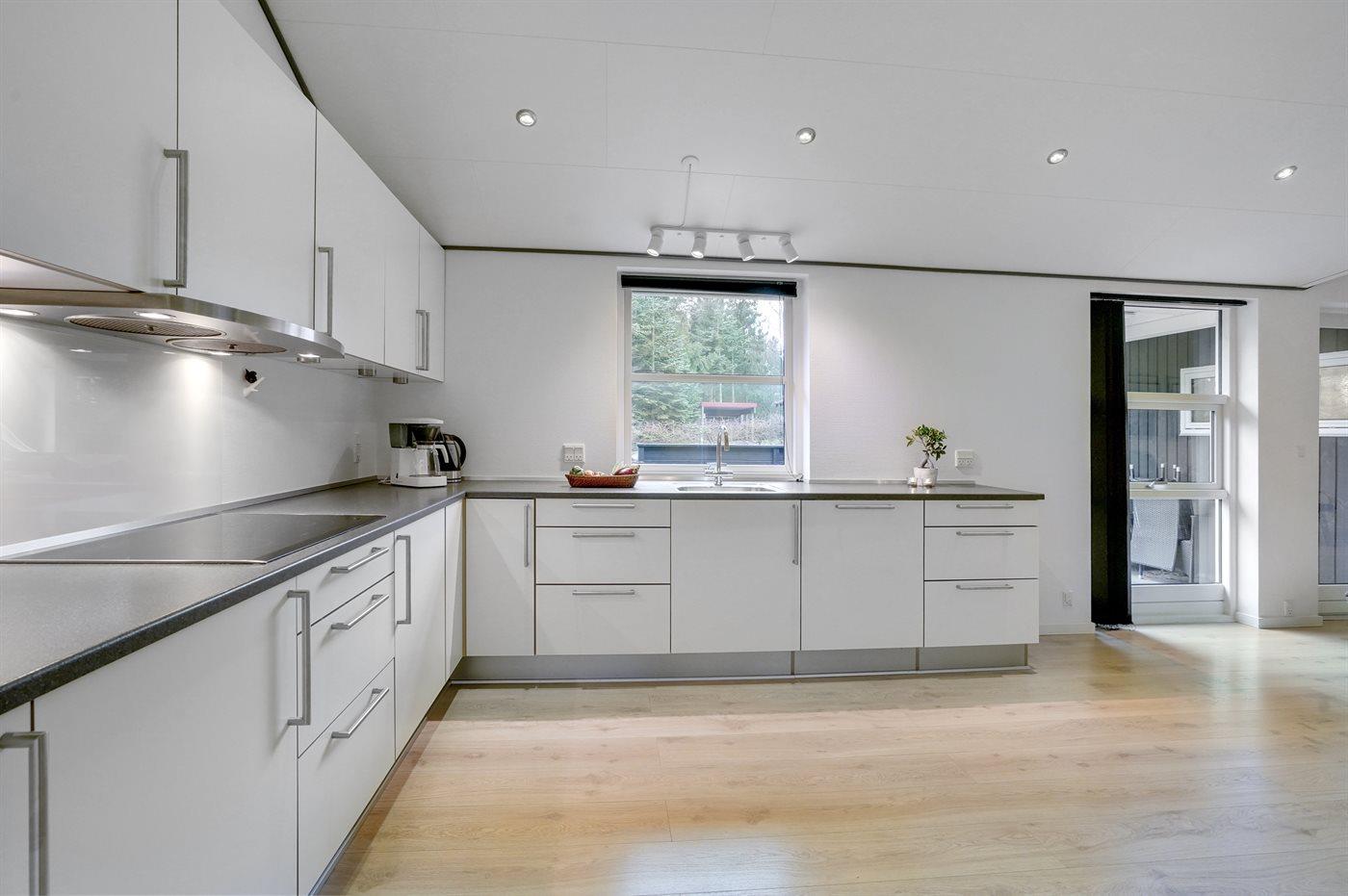 Køkkenet er udstyret med 1 køleskab. Der er 4 keramiske kogeplader, varmluftovn, mikrobølgeovn samt opvaskemaskine.