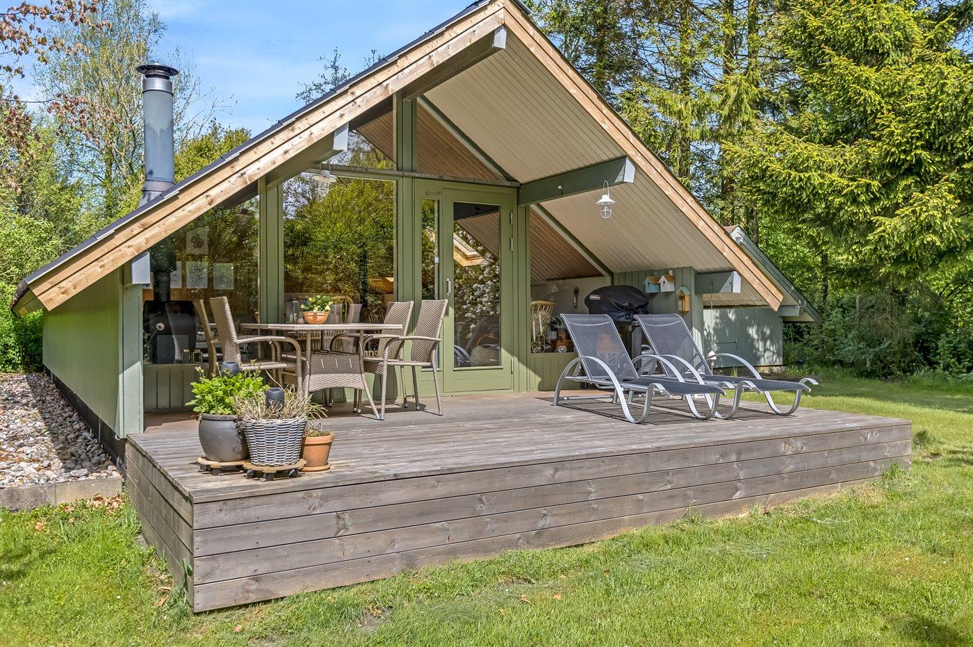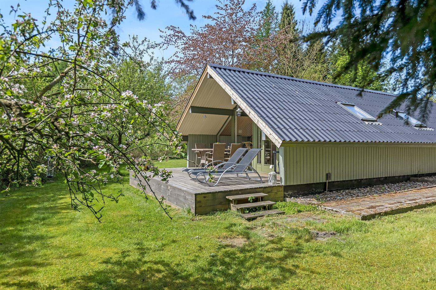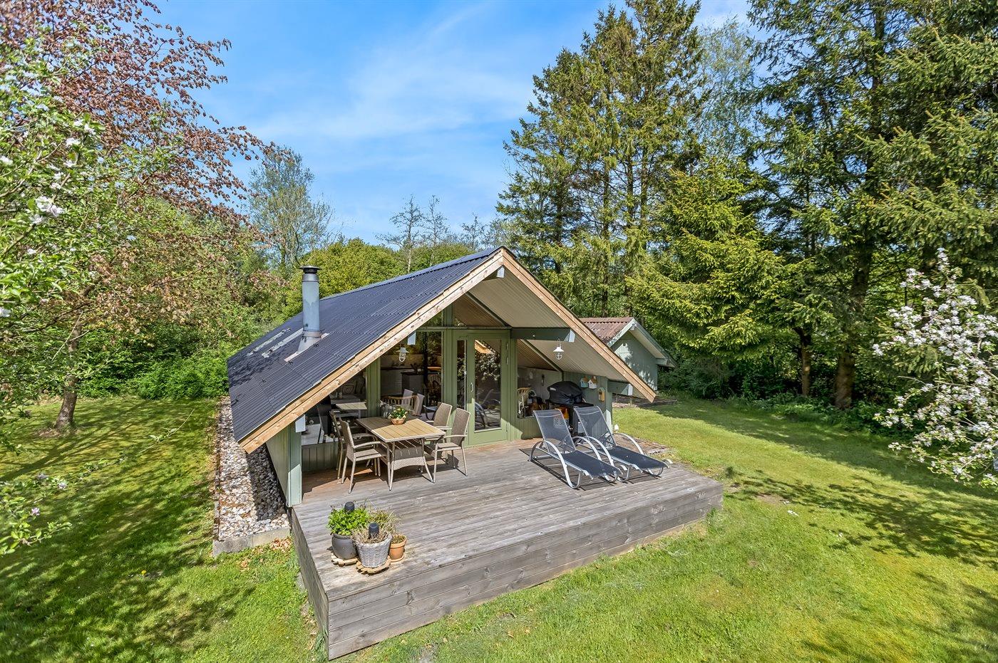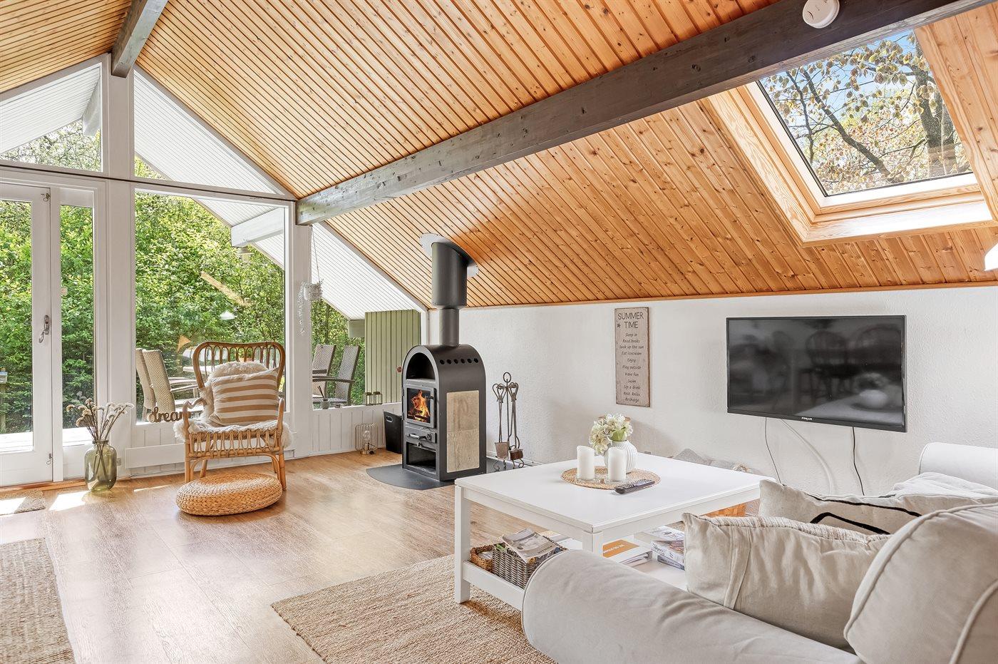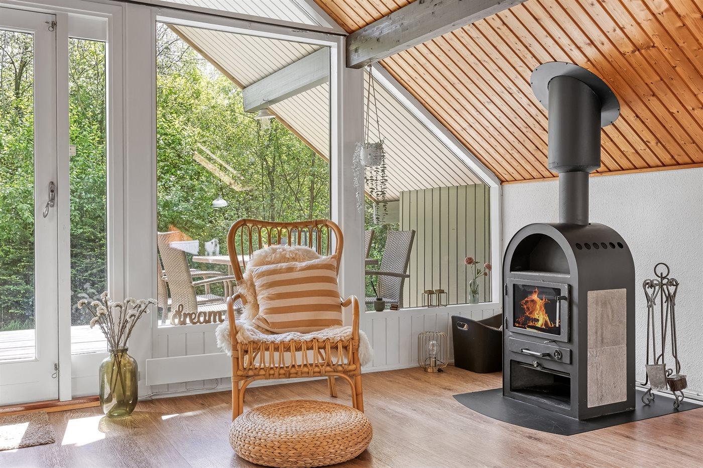 Charmerende sommerhus i rolige omgivelser med brændeovn og stor terrasse på en 850 m² naturgrund.