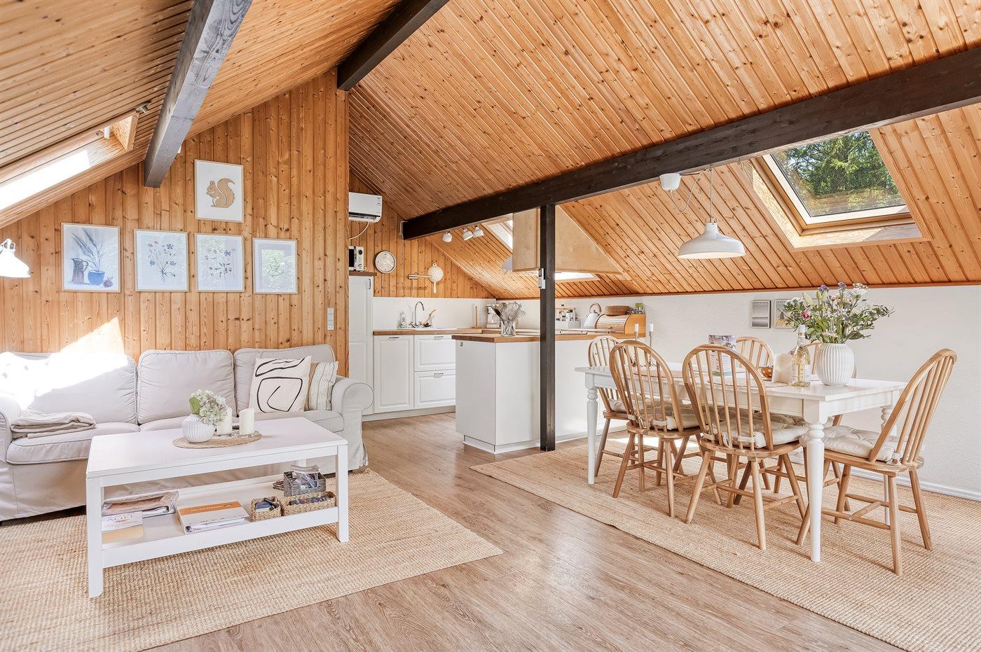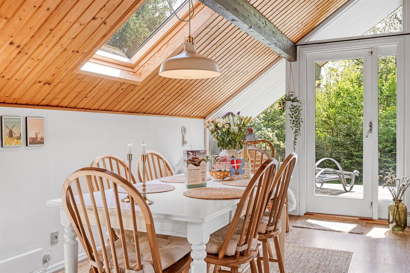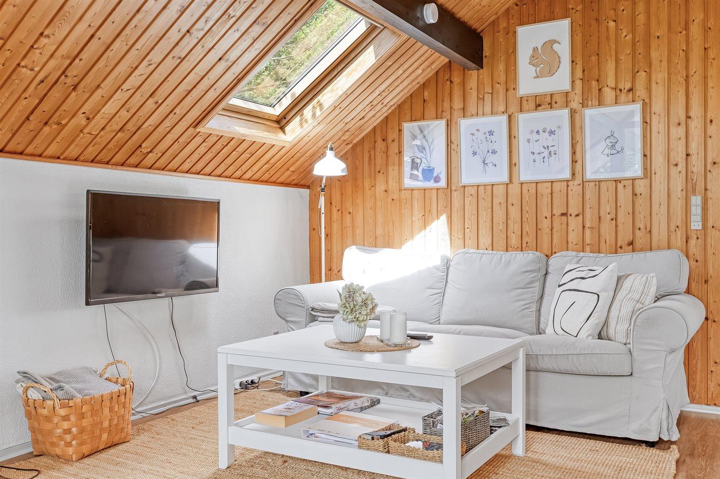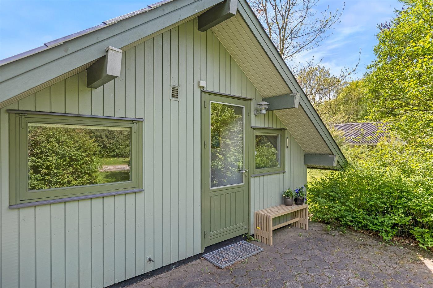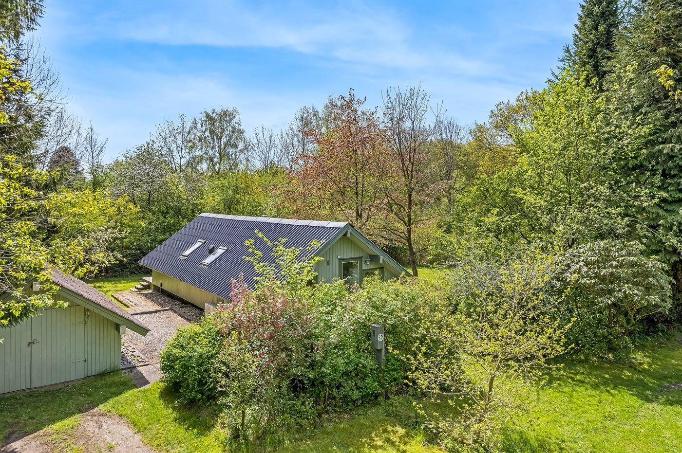 Charmerende sommerhus i rolige omgivelser med brændeovn og stor terrasse på en 850 m² naturgrund.