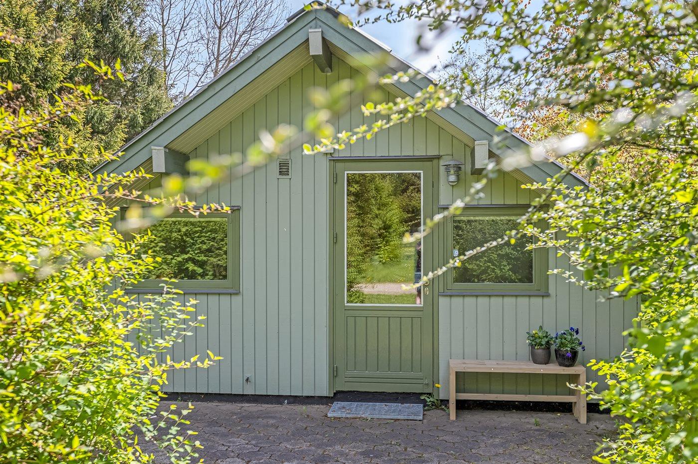 Skønt, lille sommerhus beliggende i et roligt område på en dejlig grund omkranset af høje træer.