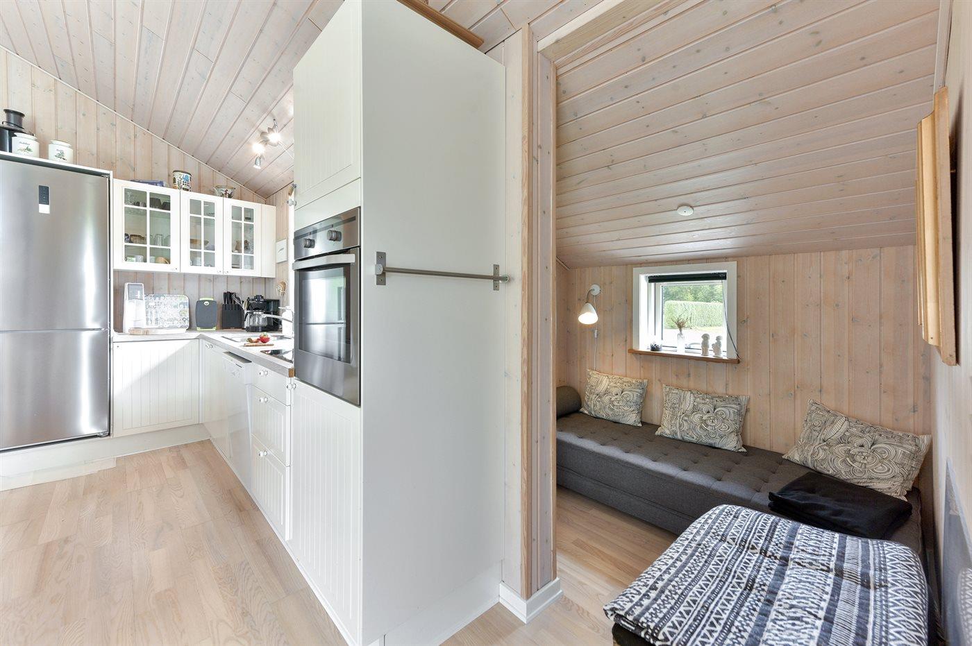 Køkkenet er udstyret med 1 køleskab. Der er 4 induktionskogeplader, varmluftovn, mikrobølgeovn samt opvaskemaskine.