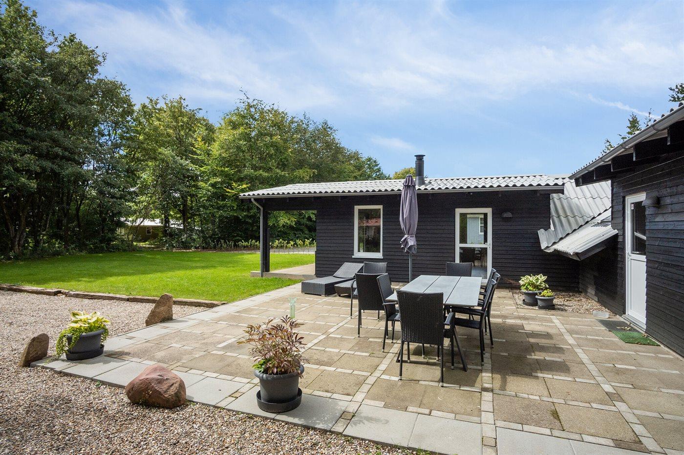 Ferieboligen er beliggende på en 875 m² stor naturgrund. Der er 30000 m til havet. Der er 17000 m til Vadehavet. Nærmeste forretning er beliggende i en afstand af 700 m. Til ferieboligen hører åbent terrasseareal. Desuden er der overdækket terrasse. Der er redskabsrum. Grill til rådighed. Parkering ved ferieboligen.