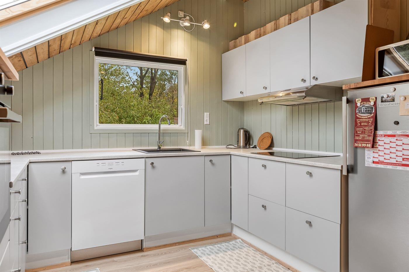 Køkkenet er udstyret med 1 køleskab. Der er 4 keramiske kogeplader, varmluftovn, mikrobølgeovn samt opvaskemaskine.