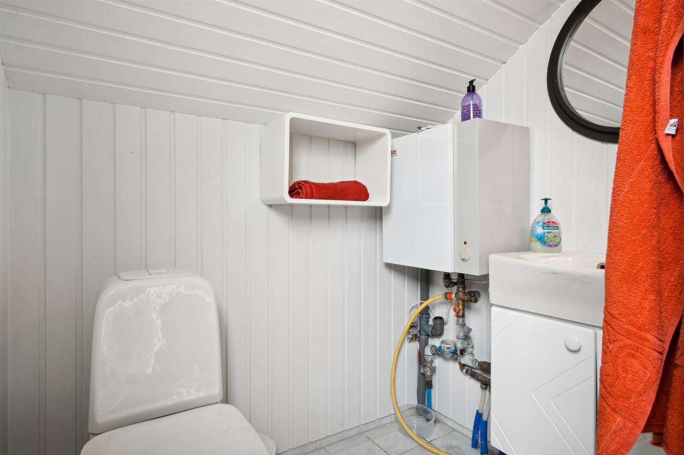 Der er 2 badeværelser med bruseniche og 2 toiletter, heraf 1 gæstetoilet. Der er gulvvarme på 1 badeværelse. Der er gulvvarme på gæstetoilettet.