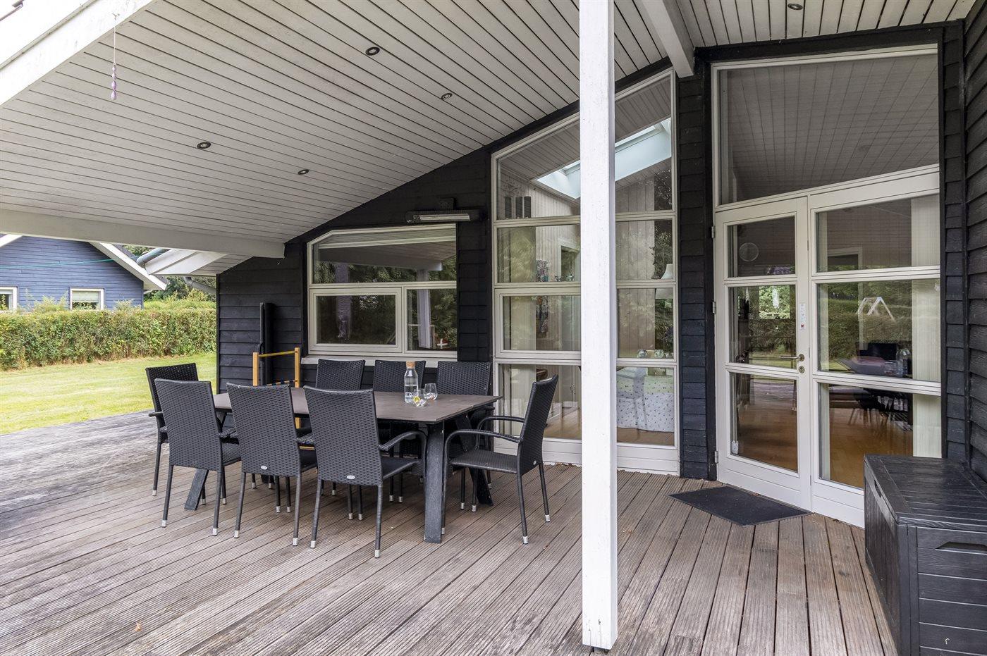 Ferieboligen er beliggende på en 875 m² stor havegrund. Der er 30000 m til havet. Der er 20000 m til Vadehavet. Der er en sø i en afstand af 200 m. Nærmeste forretning er beliggende i en afstand af 800 m. Der er en golfbane i en afstand af 1000 m. Til ferieboligen hører åbent terrasseareal. Desuden er der overdækket terrasse. Gynge. Sandkasse. Legehus. Fodboldmål. Der ligger en legeplads i en afstand af 600 m. Bålsted. Grill til rådighed. Der er installeret type 2 stik til opladning af elbil (ladekabel skal medbringes). Med 11 kW ladeeffekt. Parkering ved ferieboligen.