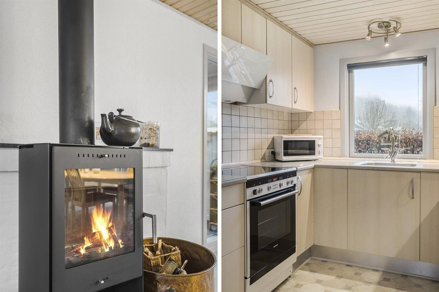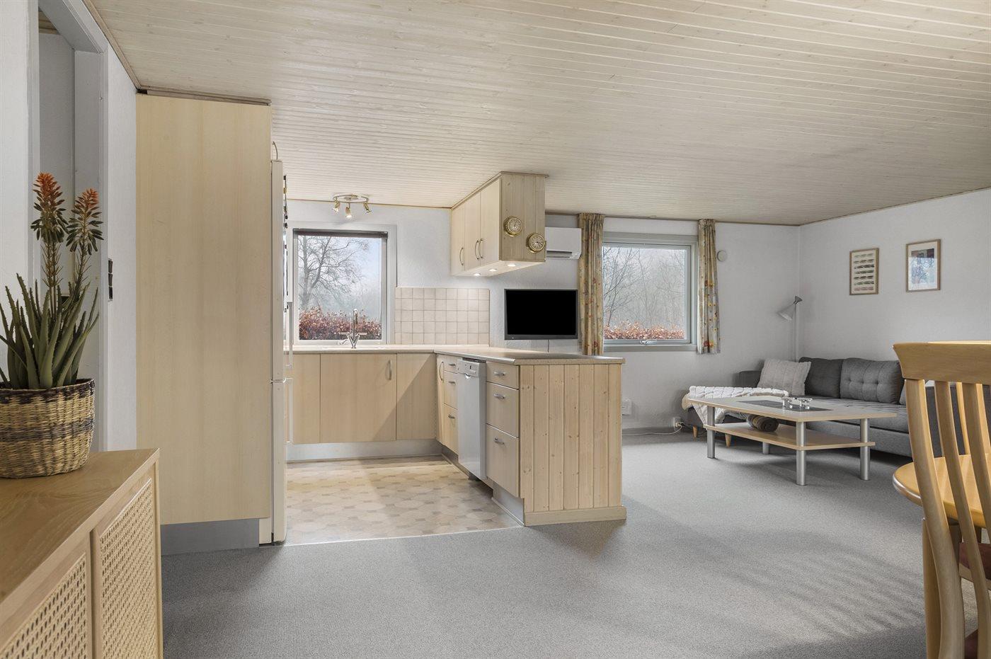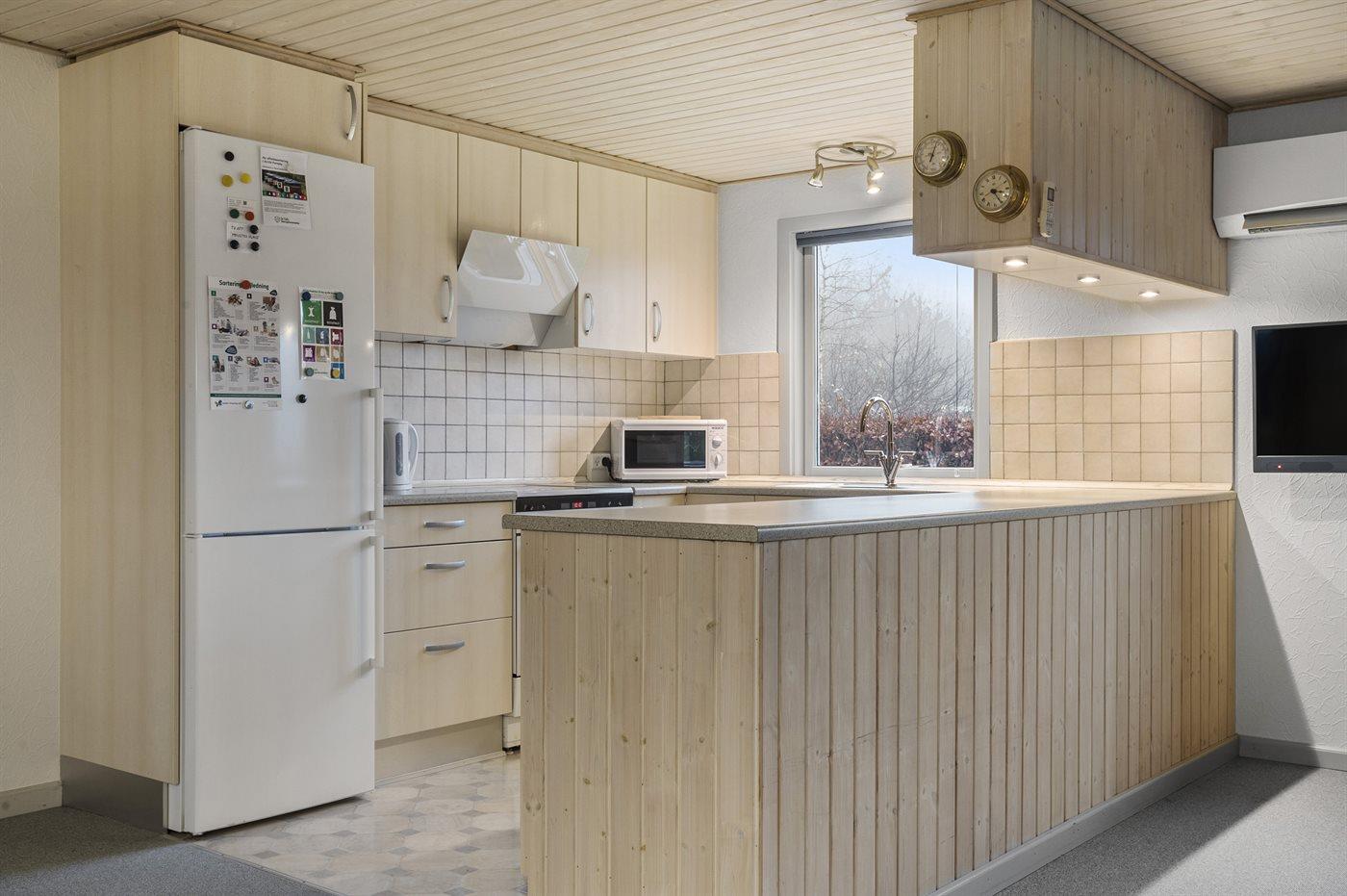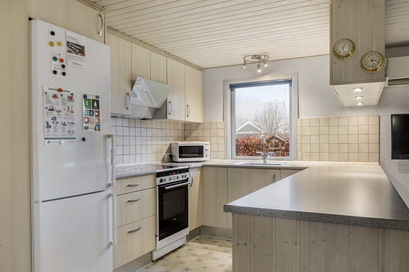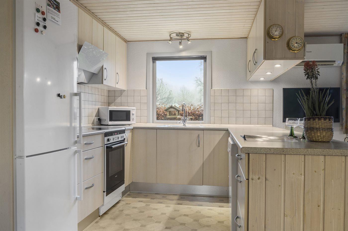 Køkkenet er udstyret med 1 køleskab. Der er 4 keramiske kogeplader, varmluftovn, mikrobølgeovn samt opvaskemaskine.