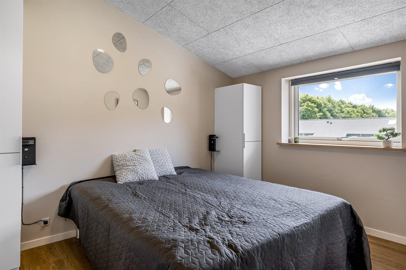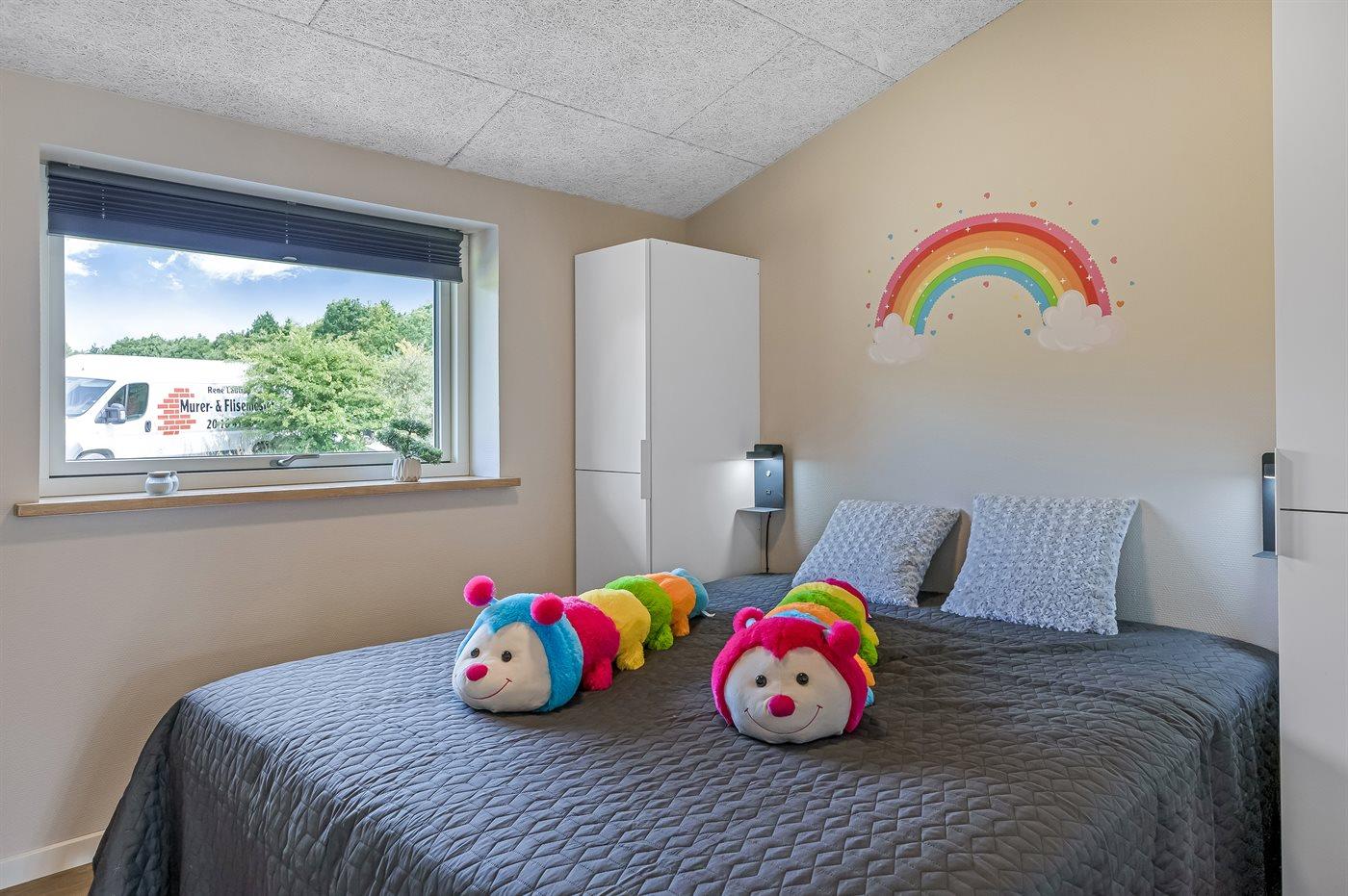 Der er i alt 5 soveværelser. Sovepladserne fordeler sig på: 8 sovepladser i dobbeltsenge. 2 sovepladser i enkeltsenge. Derudover er der 2 stk. barnesenge.