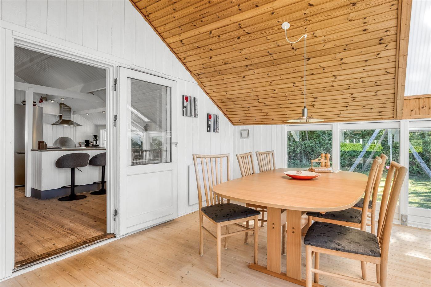 Køkkenet er udstyret med 1 køleskab. Der er 4 keramiske kogeplader, varmluftovn, mikrobølgeovn samt opvaskemaskine.