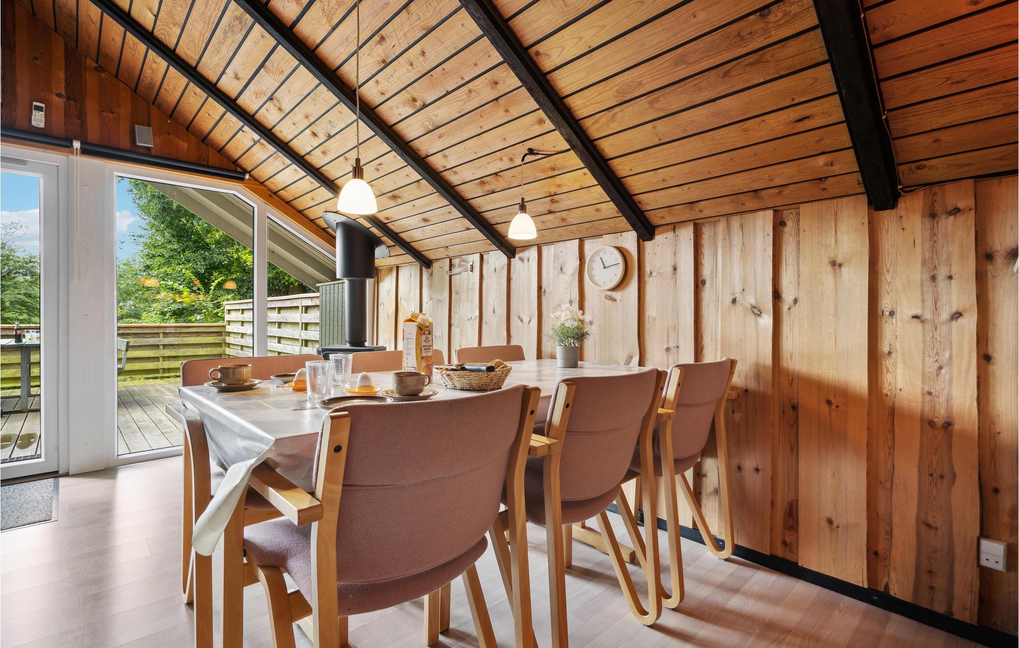 Tilbring en afslappende ferie i dette feriehus i Arrild Ferieby. Brug det veludstyrede hus med stor træterrasse som en rolig base for jeres familieferie. Tilbered jeres måltider sammen i køkkenet og nyd hyggelige aftener med sjove brætspil, kortspilsdyster eller en god film. I haven, som omkranser huset, kan både store og små lege. Hvad med en fodboldkamp eller løbekonkurrence for hele familien? Nyd, at I ikke skal tidligt op og tilbring stemningsfulde aftener på terrassen, når vejret er godt.