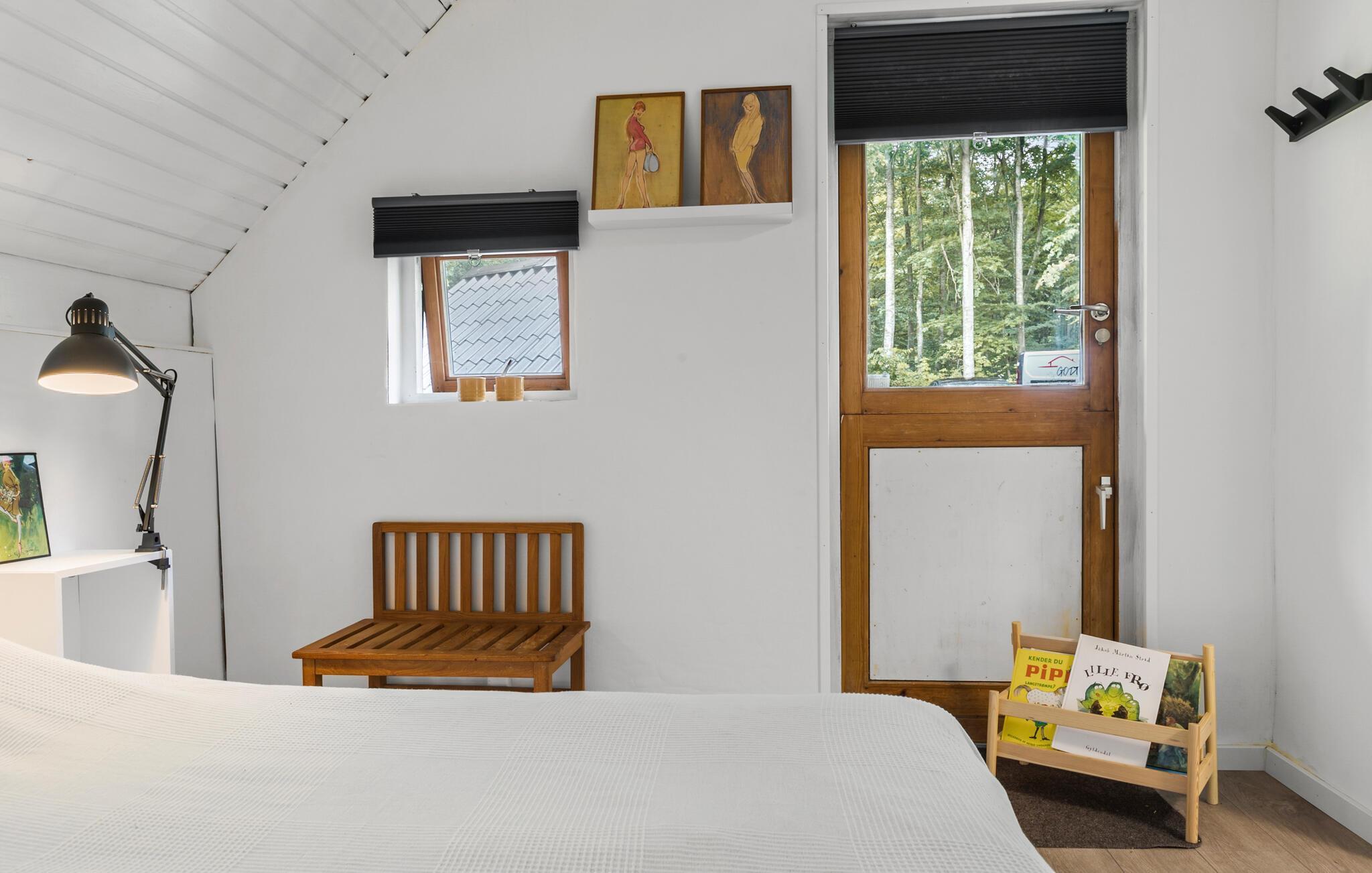 Er I på udkig efter et hyggeligt sommerhus til jeres næste familieferie, så er dette et godt bud. Her får I et hus, som har højt til loftet med hyggelige fritlagte bjælker og en moderne indretning. Lav lækre retter i det åbne køkken, og smid jer i sofaen med en god film på tv’et om aftenen. På køligere dage kan I skrue op for hyggen ved at tænde op i brændeovnen.