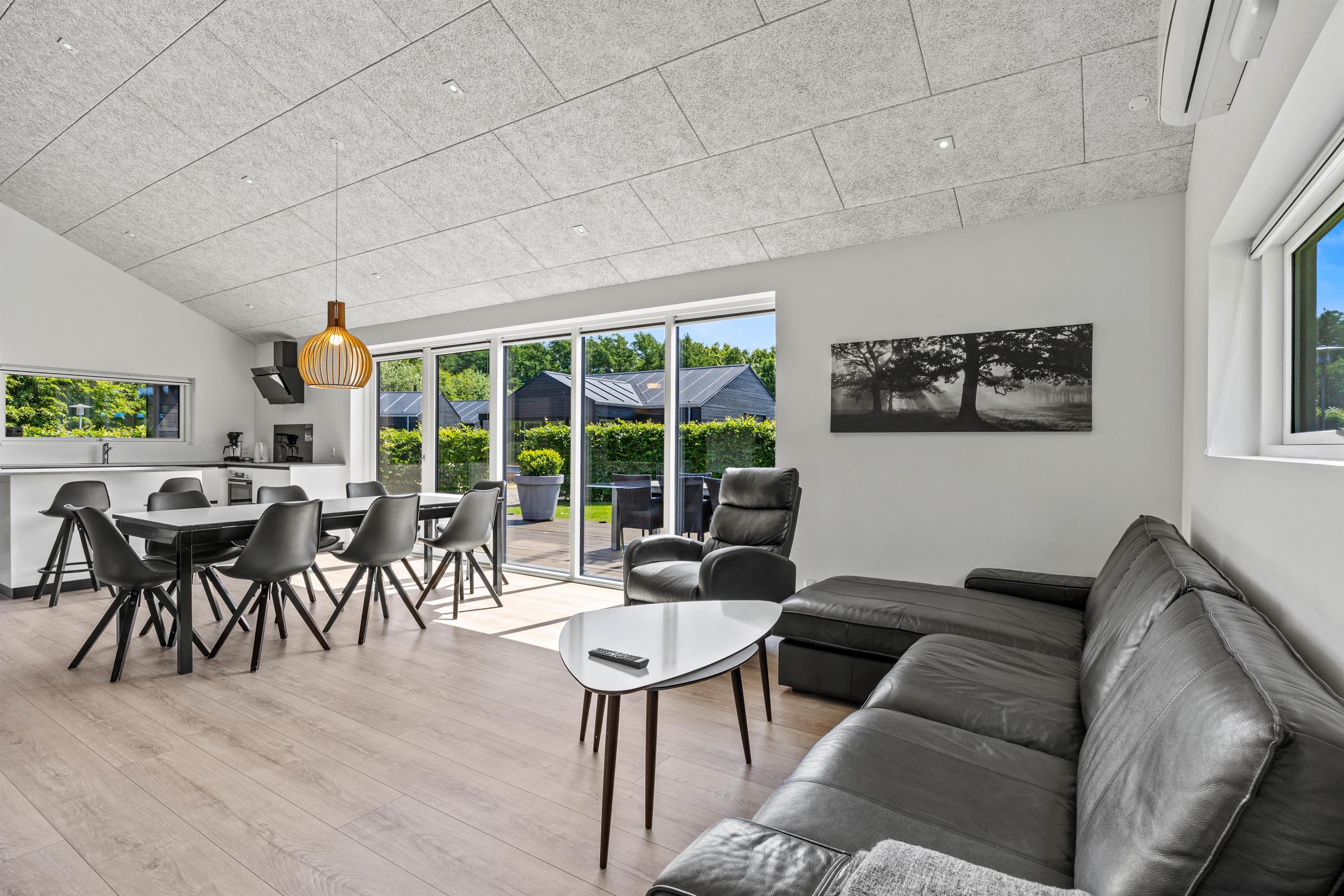 Med plads til 8 personer fordelt på tre dejlige værelser og to hemspladser byder huset på en varm og hjemlig atmosfære fra første øjeblik. De store vinduespartier i opholdsrummet lukker lyset ind og rammer det elegante trælaminatgulv, mens gulvvarmen sikrer komfort på køligere morgener.