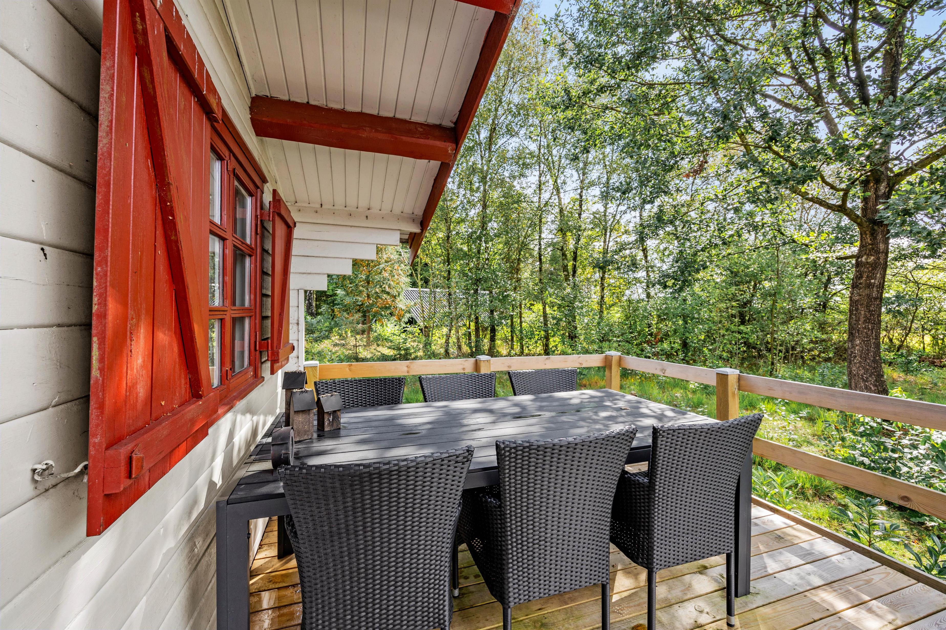 Dejlig terrasse midt i den skønne natur med fyrretræer