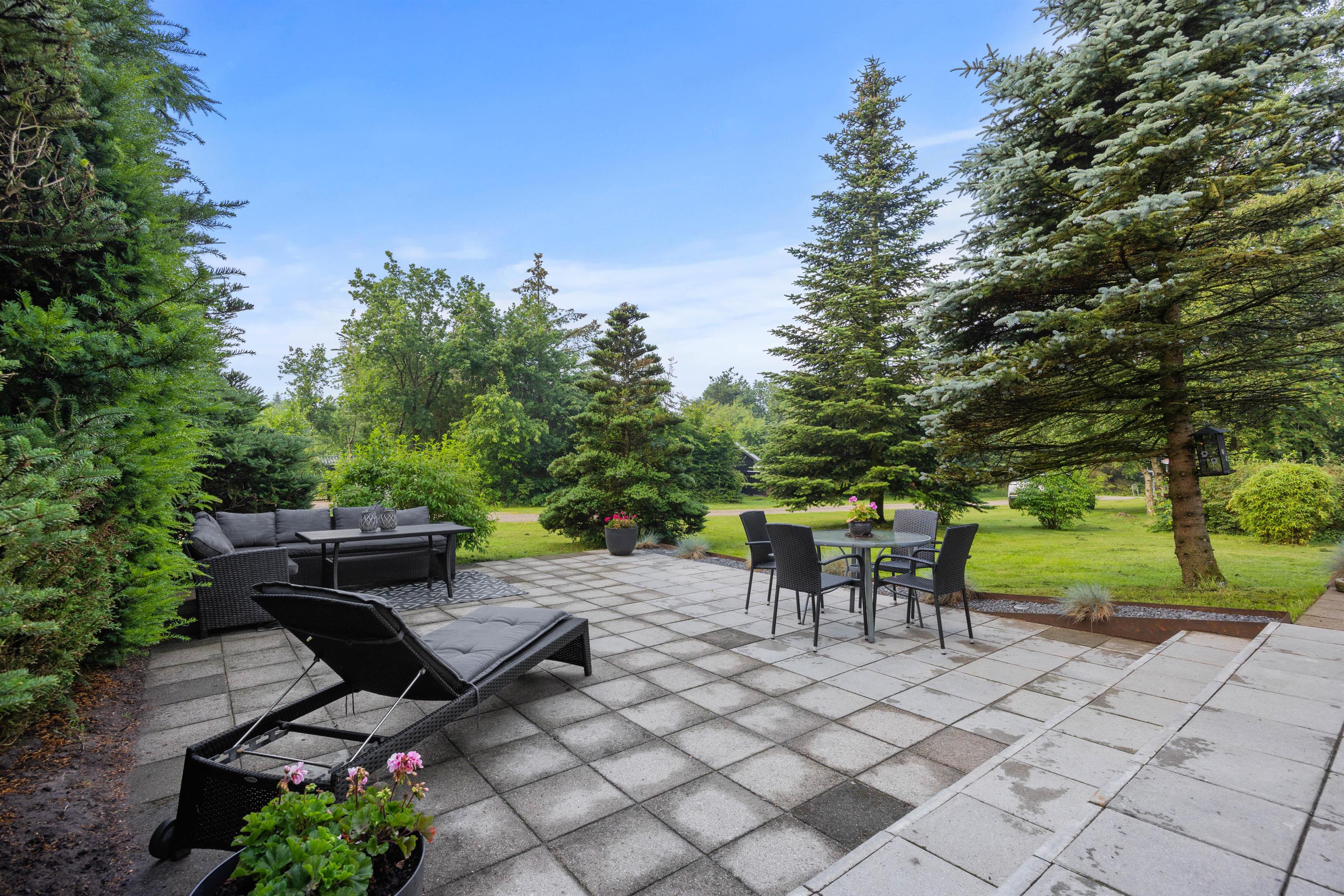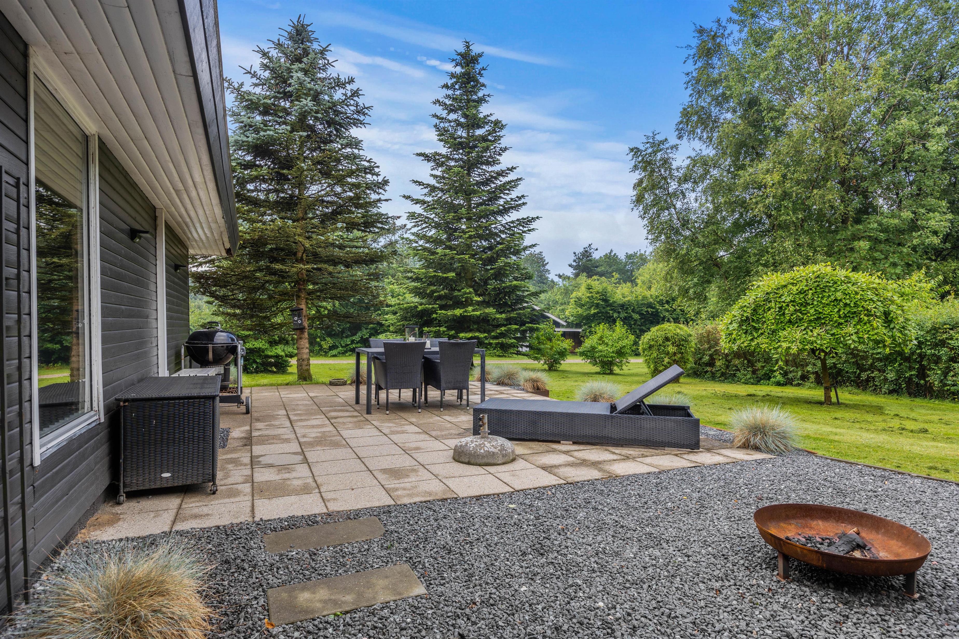 Et højdepunkt ved feriehuset er terrassen, der selvfølgelig skal nydes på de lune sommerdage. Havemøblerne står klar! Her kan I dase i solen, spiller kort eller planlægge udflugterne. Skønt er her også en fin grøn græsplæne, der indbyder til aktiviteter for store som små. Måske hele familien skal spille kongespil?