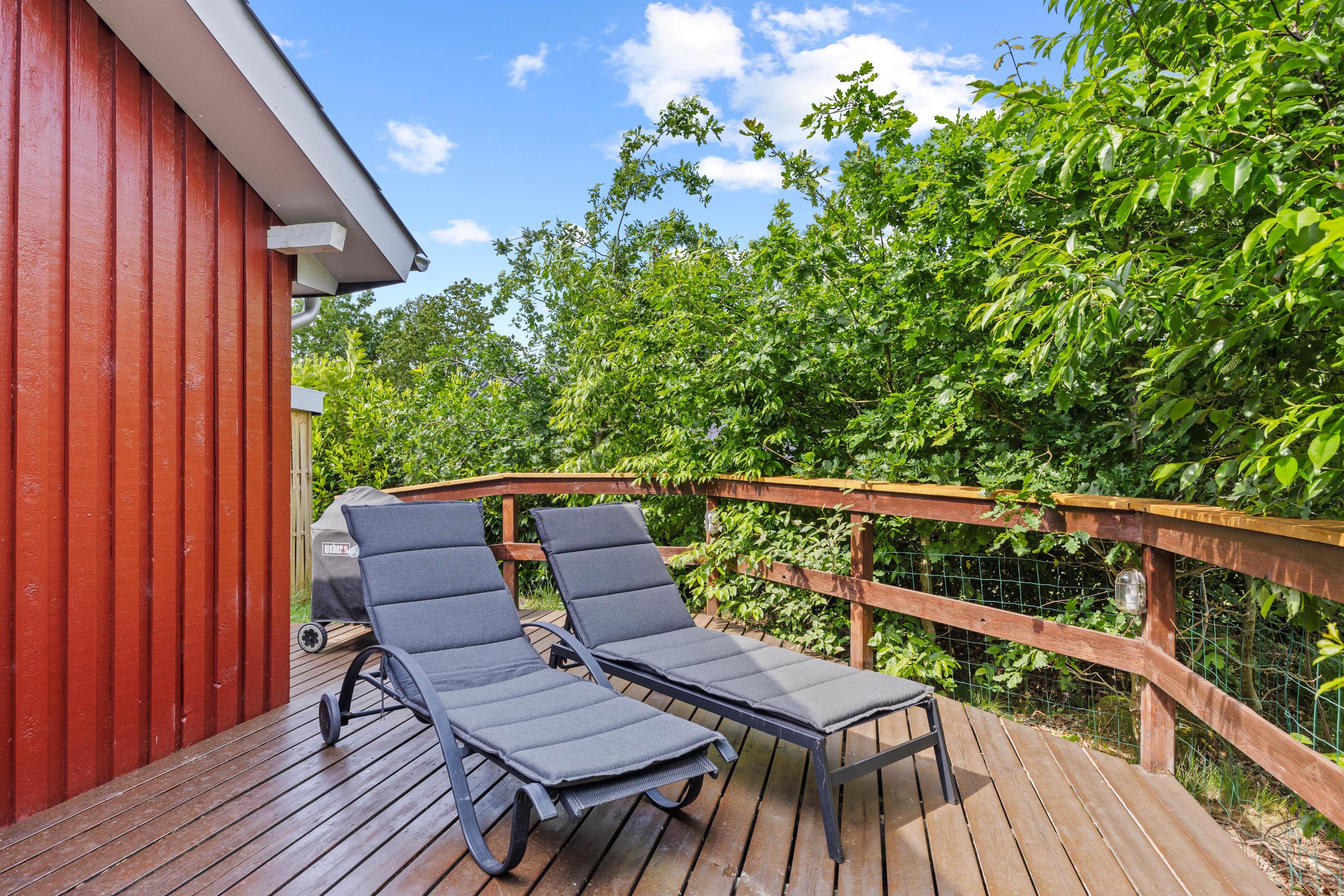 Et højdepunkt ved feriehuset er terrassen, der selvfølgelig skal nydes på de lune sommerdage. Havemøblerne står klar. Her kan I dase i solen, spille kort eller planlægge udflugterne. Skønt er her også en fin grøn græsplæne, der indbyder til aktiviteter for store som små. Måske hele familien skal spille kongespil?