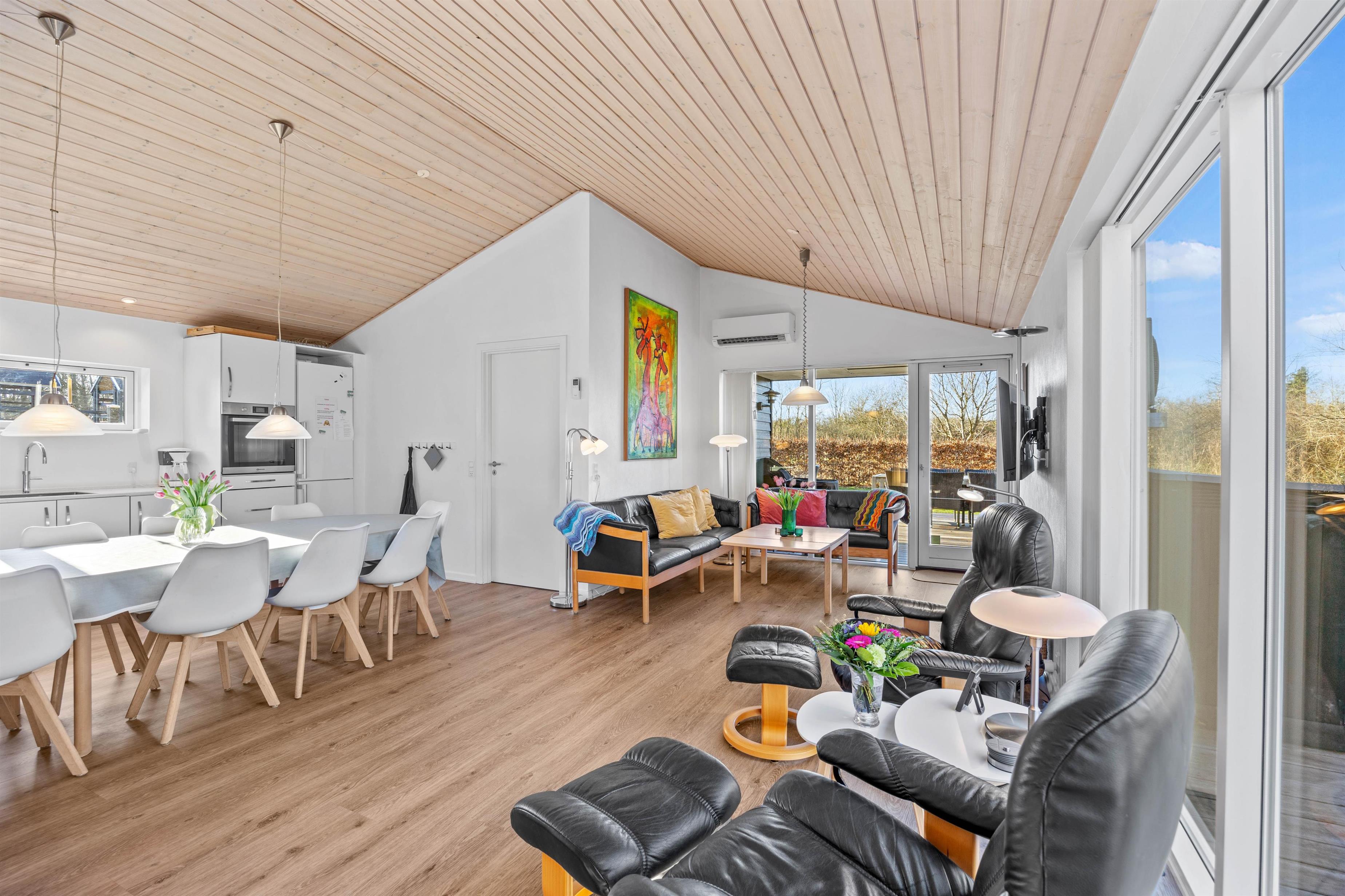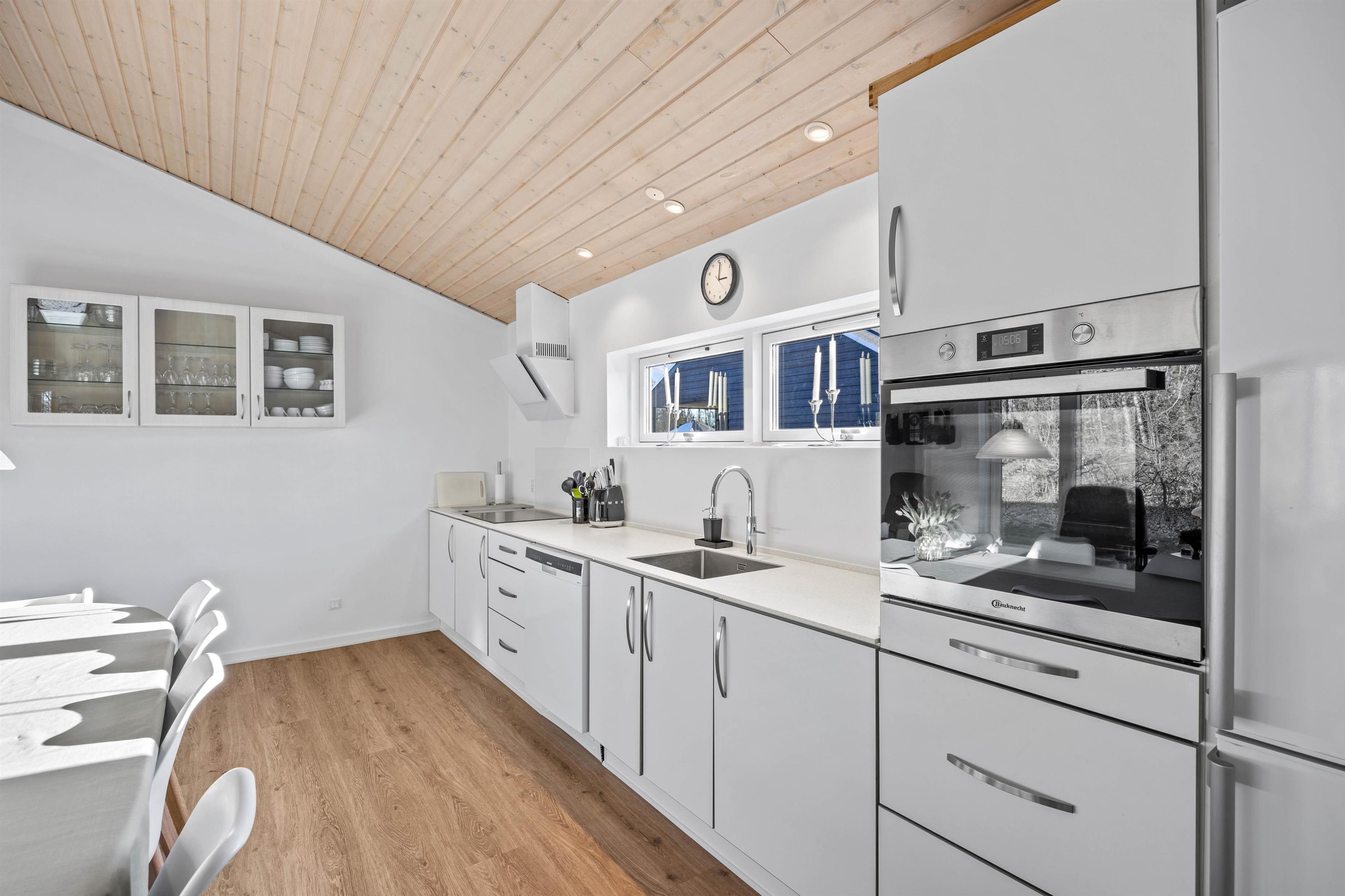 Sommerhuset er renoveret i 2023 og fremstår særdeles lyst og indbydende. I hovedhuset er alrummet, hvor I alle kan samles og skabe gode ferieminder. De store vinduespartier mod nord og vest skaber et fantastisk lysindfald og god atmosfære i rummet. Tænd op i brændeovnen, find drikkevarer og snacks frem og hyg jer med et sjovt kortspil i sofagruppen.