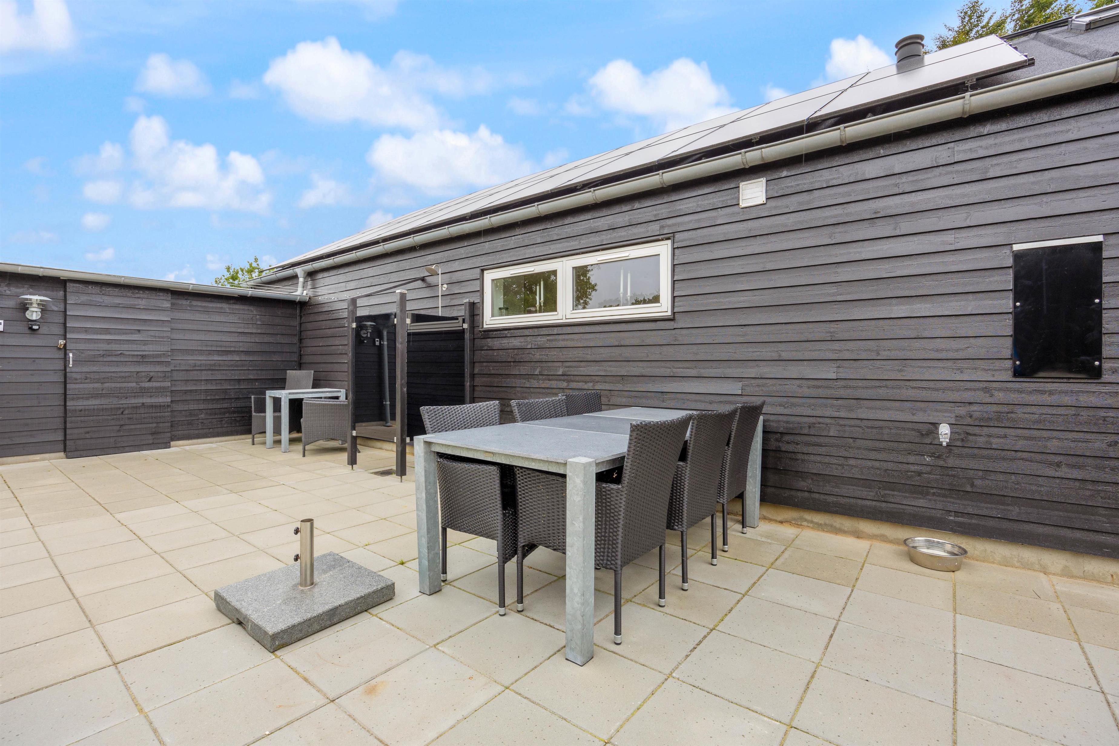 Sommerhuset har en rigtig fin terrasse, som strækker sig rundt om både anneks og hovedhus. Dette vil uden tvivl blive jeres samlingspunkt på en lun sommerdag.