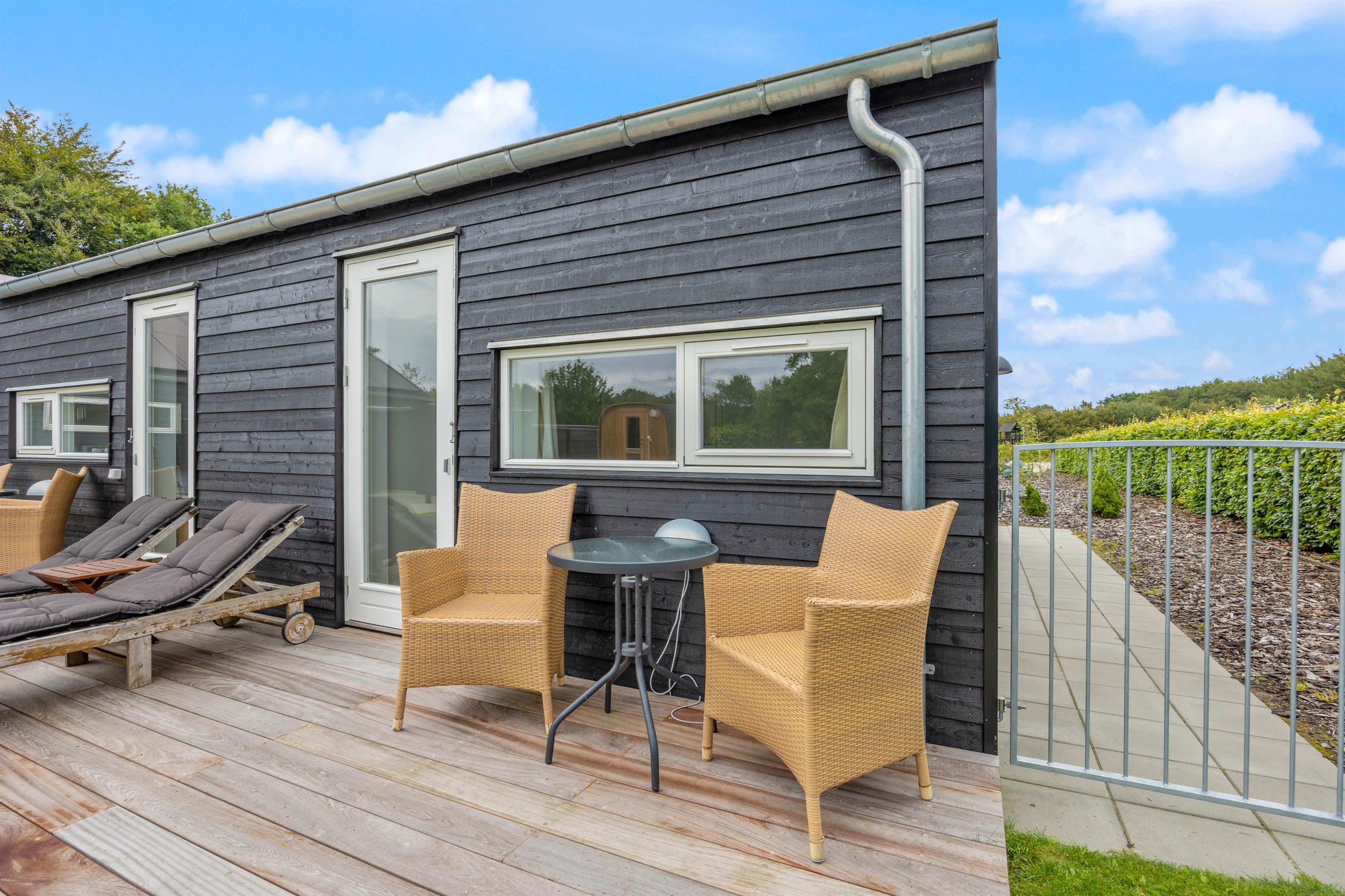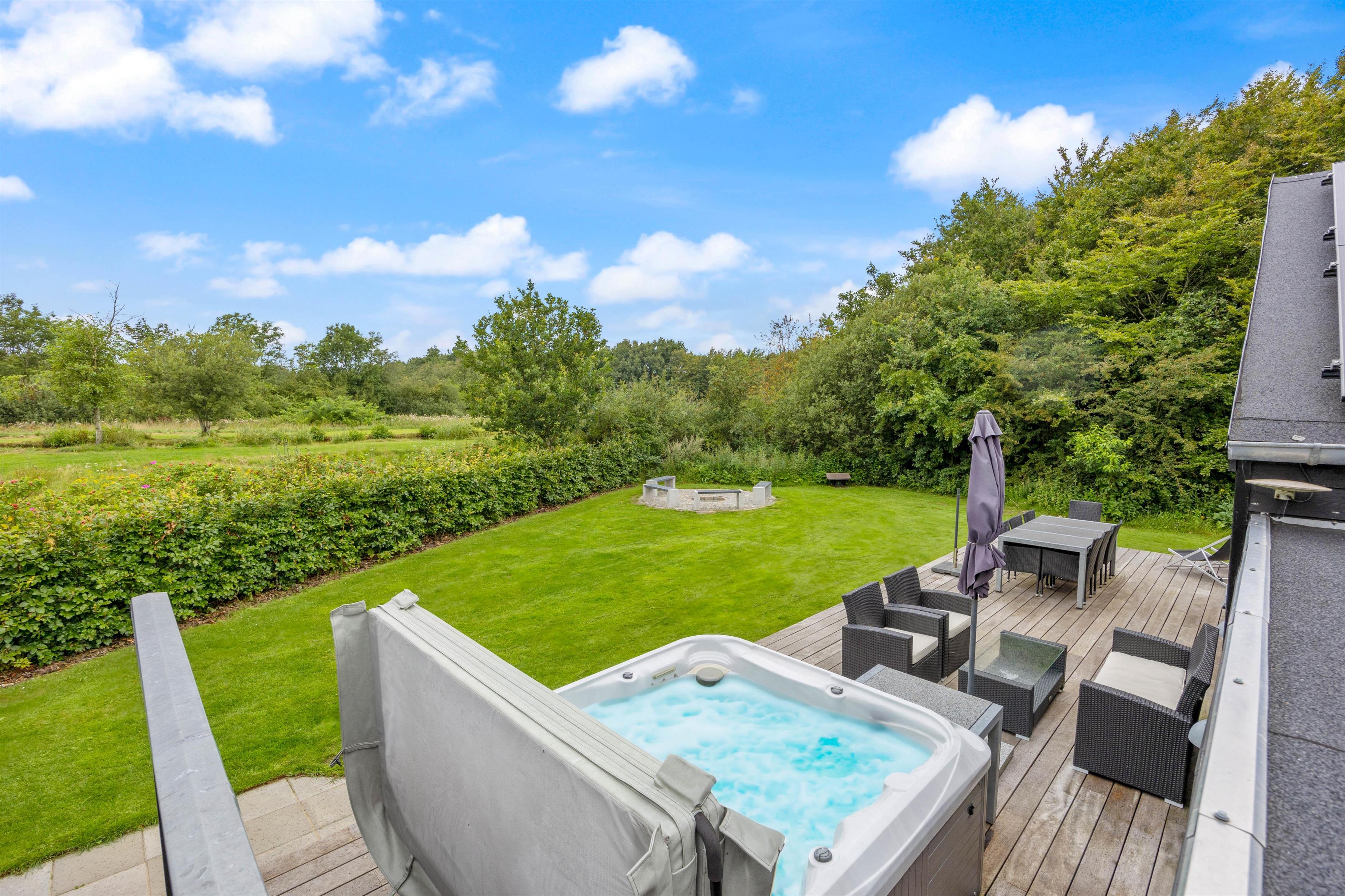 Skulle vejret ikke vise sig fra sin bedste side, kan I alligevel bruge de udendørs faciliteter. Her er nemlig både udespa, udebruser og sauna, som indbyder til afslapning og velvære. Udebruseren kan benyttes fra april til november. – Hvad enten solen skinner, en lille regnbyge passerer eller temperaturen er til den kølige side.
