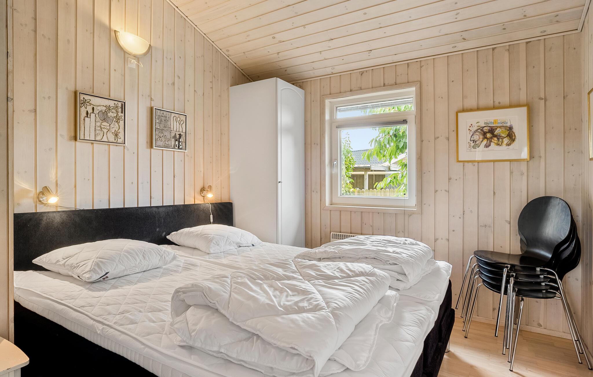Nyd en afslappende pause fra hverdagen i dette behageligt møblerede hus, der harmonisk kombinerer lys, komfort og natur. Huset er roligt beliggende og omgivet af frodigt grønt, kun en kort gåtur fra vandet. Den åbne stue med sit træloft skaber en særlig hjemlig atmosfære. Store vinduer, lyst træ og møbler af høj kvalitet bidrager til det indbydende helhedsindtryk. Hyg jer sammen i den behagelige hjørnesofa, bladr i et magasin, eller kig ud i haven. Det tilstødende køkken er åbent og tilbyder plads til at lave mad sammen. Spisebordet giver plads til, at alle kan nyde hyggelige måltider.