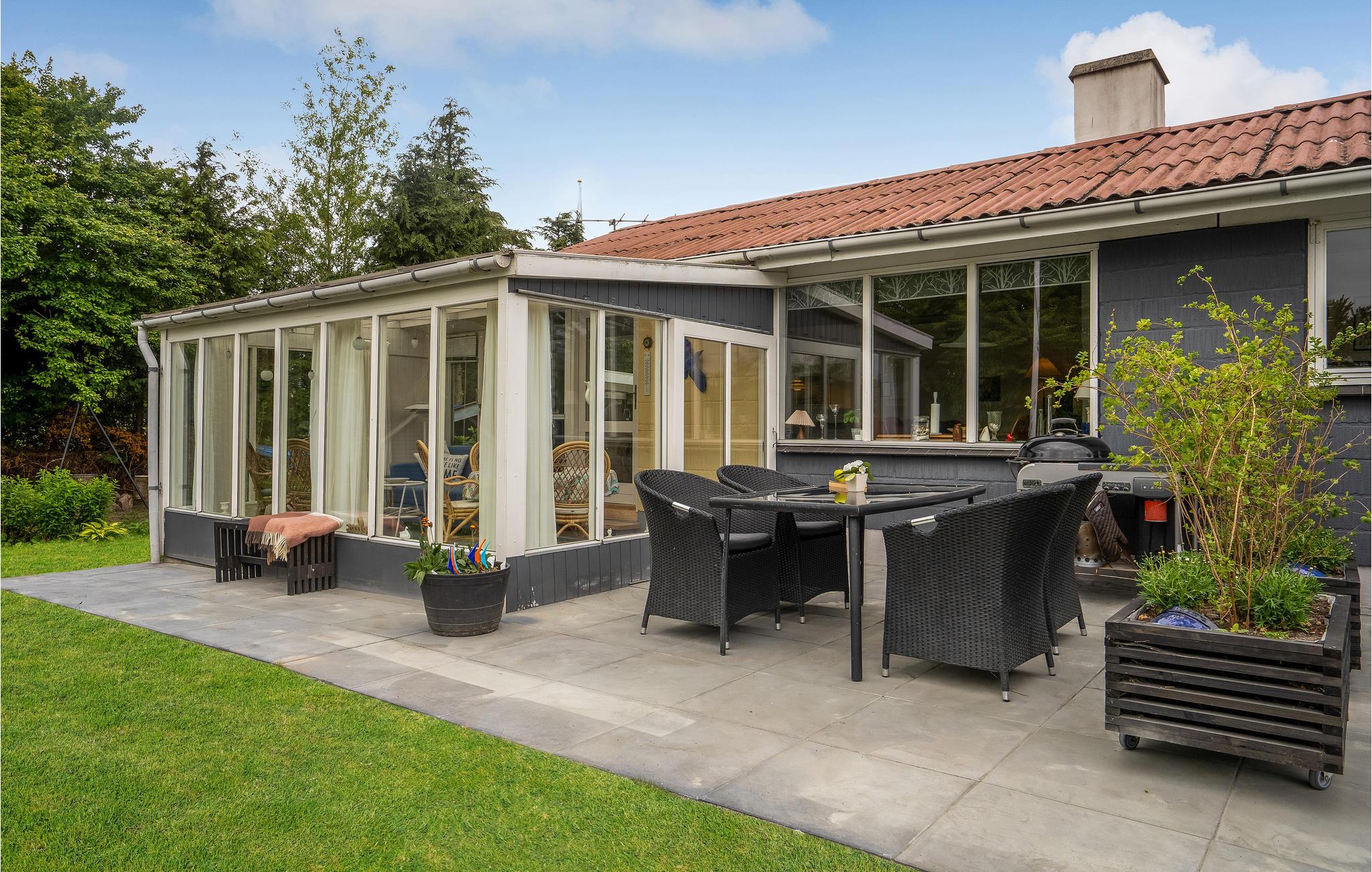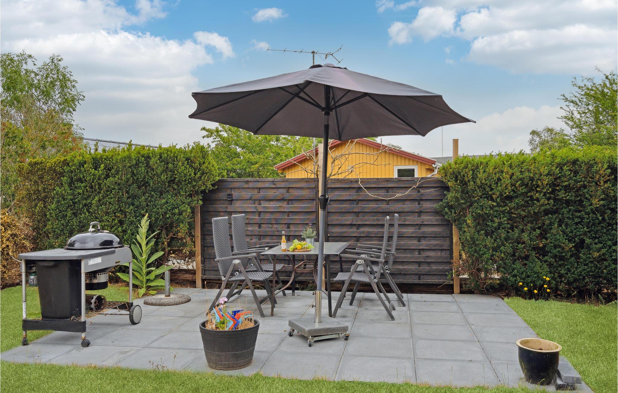 Der er alle muligheder for at nyde naturen i den smukke have med høje træer og mange buske. Her er mange hyggelige hjørner, hvor man kan fordybe sig i en god bog. Annekset i haven indeholder blandt andet køjeseng og legeredskaber. Der er også flere terrasser - blandt andet en stor, overdækket terrasse, hvor I kan grille og hygge jer i al slags vejr. I haven er der også en hængekøje til en skøn lur under trætoppene. Udendørsbruseren i haven tilbyder afkøling på varme sommerdage og muligheden for at skylle salt og sand af sig efter en dejlig dag på stranden.