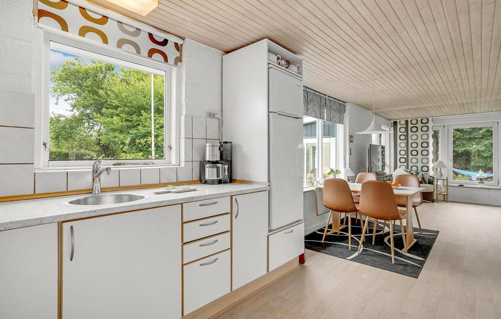 I den smukke bugt As Vig indbyder dette hus til en afslappende ferie. Der ligger ca. 300 m fra en af ??Danmarks bedste sandstrande og meget tæt på indkøbsmuligheder. Huset er udstyret med moderne møbler og fremstår lyst og stemningsfuldt med bl.a. kurvestole i udestuen og en behagelig sofa i stuen. Stuen er åben til køkkenet, hvor I kan nyde udsigten over haven, mens I laver mad og vasker op. Stuen har både luft-til-luft varmepumpe og brændeovn, så I kan varme jer på kølige dage og lytte til de knitrende flammer.