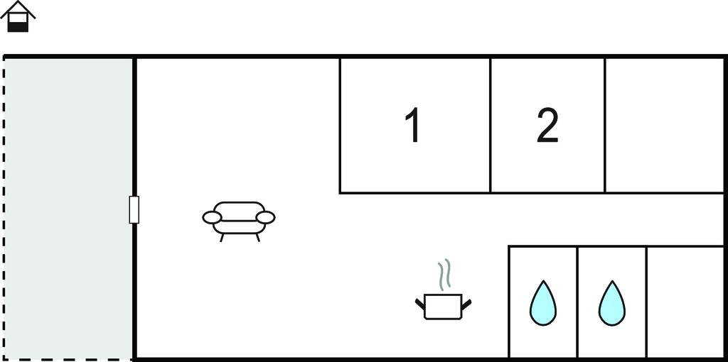 Huset har to soveværelser, hvoraf det ene har dobbeltseng, kommode og TV med DVD-afspiller. Der er selvfølgelig også film for børn og voksne.