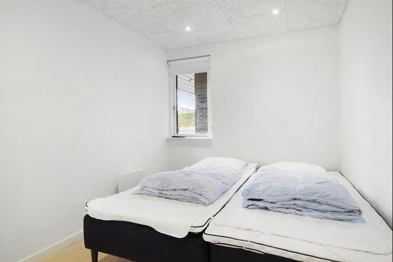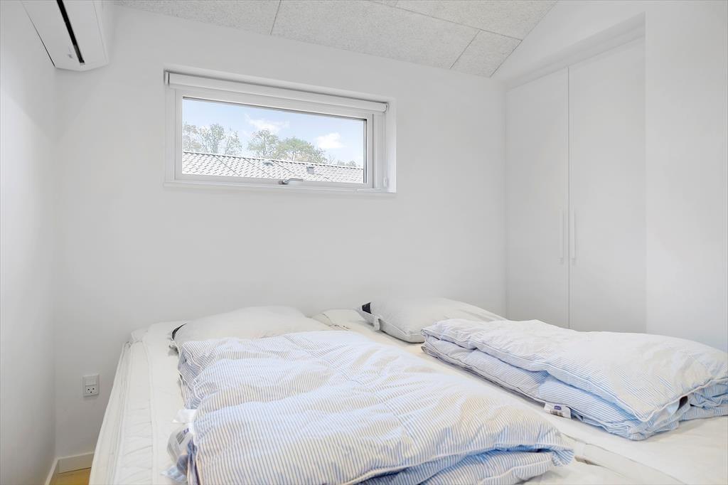 Her er plads til 5 personer og en hund. Værelserne fordeler sig med to dobbeltsenge med kvalitetsmadrasser og en trekvart-seng, der er hyggeligt indrettet i mellemgangen som en alkove.