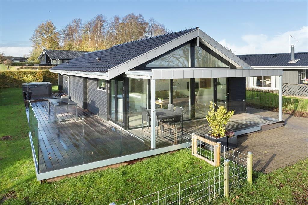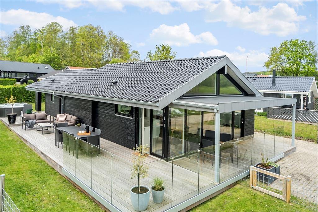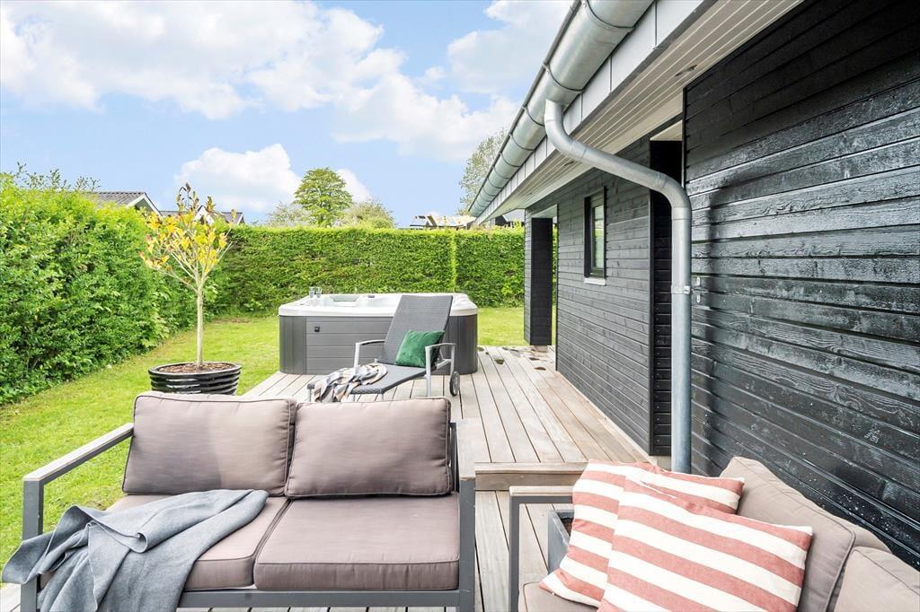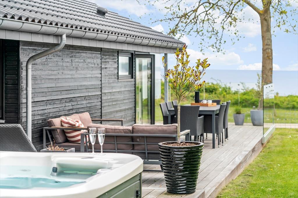 På træterrassen bag huset er også et udendørs spabad, så du kan sidde i det varme vand og nyde udsigten over As Vig.