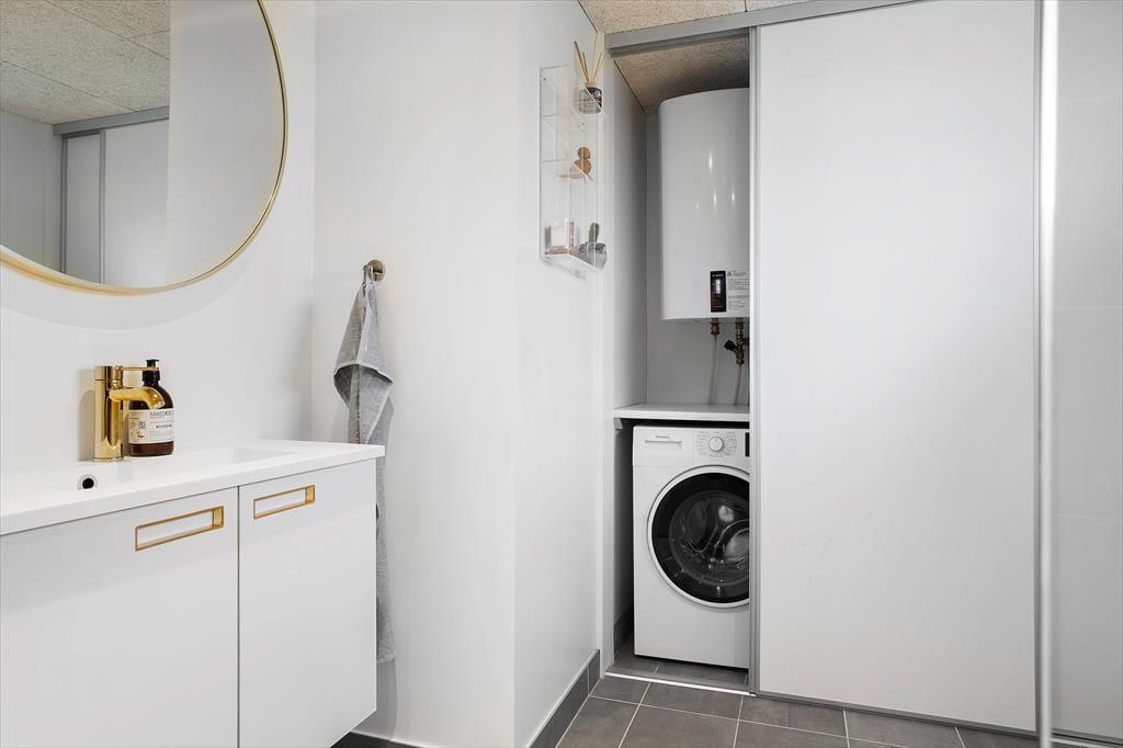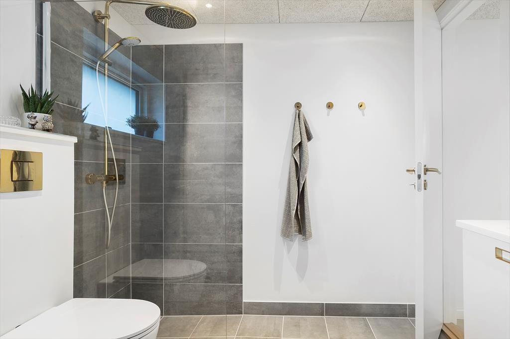 Fra soveværelserne er der let adgang til husets to badeværelser, hvor der i det ene badeværelse er vaskemaskine og tørretumbler. I huset er der 2 varmepumper og gulvvarme.