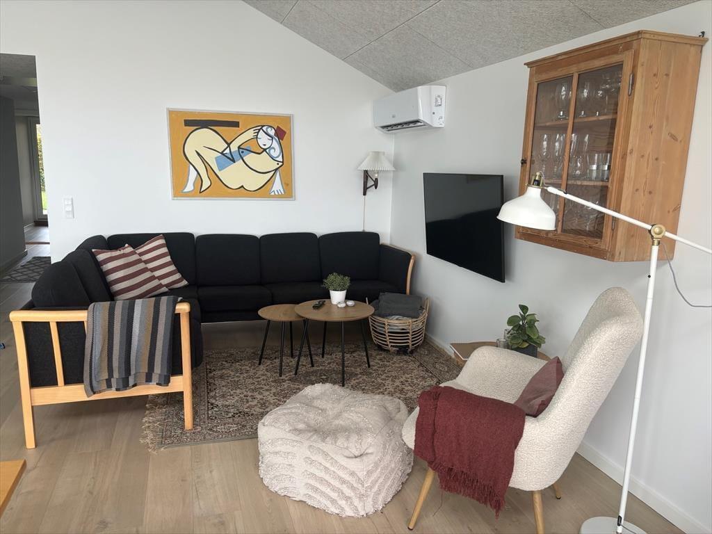 Det hyggelige sofahjørne er både oplagt til at slappe af med en god bog, eller du kan tænde for tv´et på væggn, som er et Smart TV.