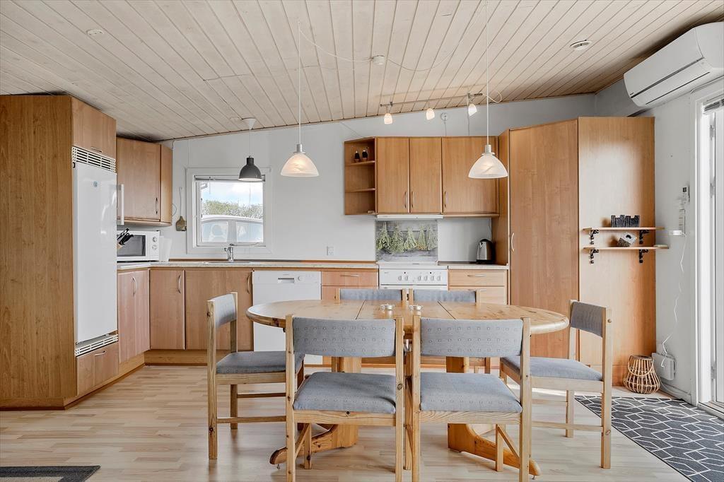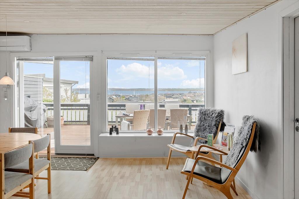 Vi har her fornøjelsen af at byde velkommen til et sommerhus med en fantastisk udsigt. Fra første skridt du tager ind i huset drages du automatisk hen mod køkken/alrummets vinduer hvorfra I har den mest fantastiske udsigt. Huset rummer et køkken med alt i hårde hvidevarer, et sofahjørne med plads til hele familien og soveværelse med dobbeltseng + en sovesofa. Desuden badeværelse med brus. I forlængelse af huset er også et anneks - her finder I en sovesofa. I forlængelse af huset er også husets bryggers hvor I bl.a. kan finde en vaskemaskine og en fryser.