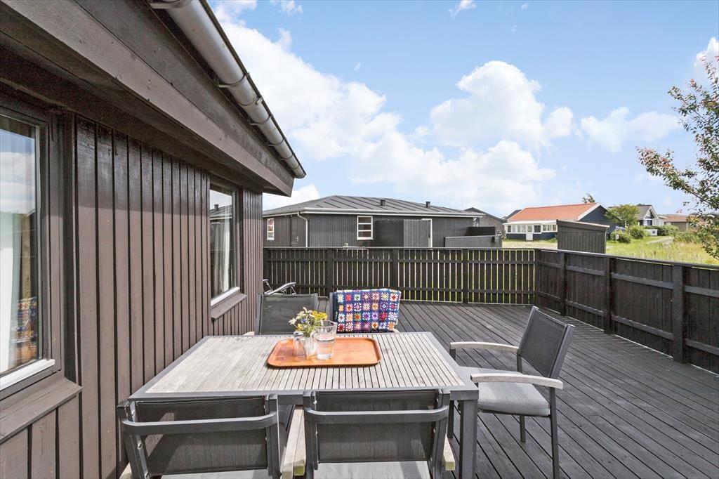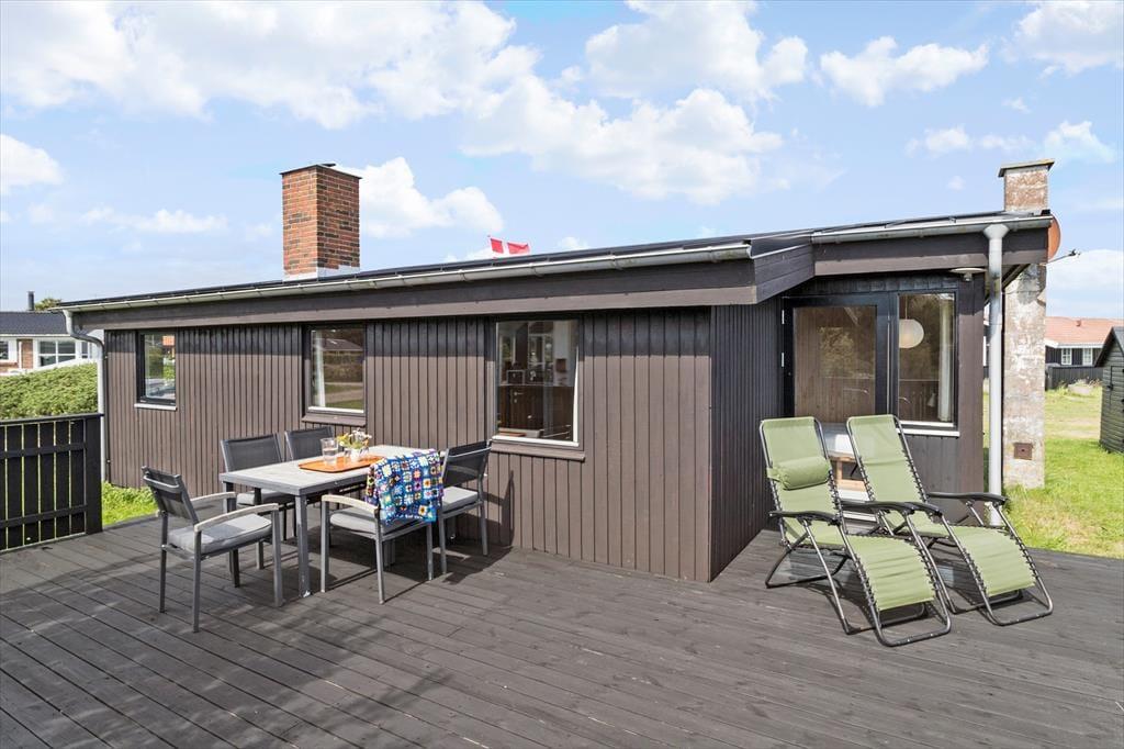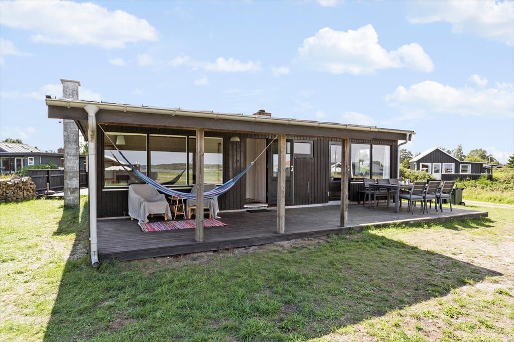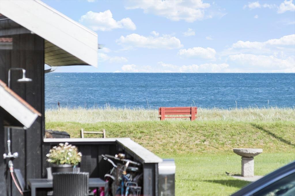 Sommerhuset ligger på en 584 m2 stor naturgrund med den mest fantastiske udsigt. Huset har en åben terrasse. På terrassen er der havemøbler samt liggestole med parasol. Her er det perfekt at bruge en masse tid med familien, med afslapning og grillhygge, samt at nyde den dejlige udsigt. Huset ligger blot 75 meter fra havet, så der er rig mulighed for at bruge mange timer ved stranden