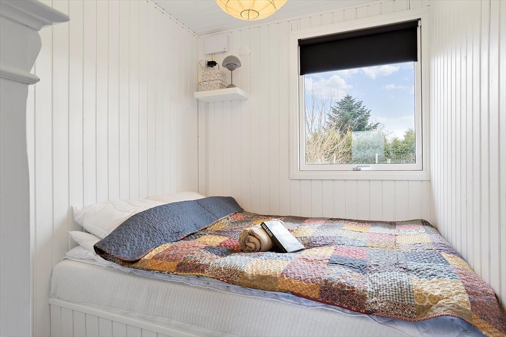 Et hyggeligt sommerhus, hvor feriestemningen både ude og inde er tydelig. Stuen er åben og indbydende, forbundet til køkkenet. Her kan du slappe af foran og nyde det skønne lysindfald fra haven. Hvad med at samle familien til et brætspil eller et godt måltid? Fra stuen er der direkte adgang til den hyggelige overdækkede terrasse, som forlænger sommermånederne. Sommerhuset rummer desuden tre gode værelser og et fint badeværelse.
