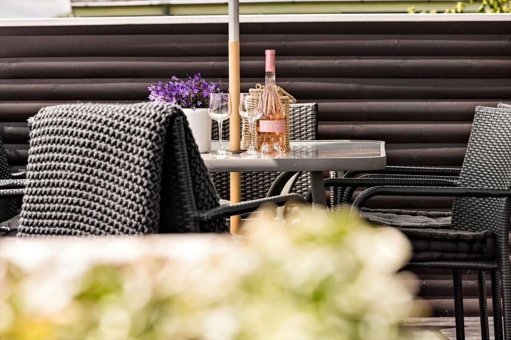Udendørsområdet byder på en skøn terrasse, hvorfra du kan nyde den fantastiske udsigt med havkig. Den store have med en rummelig græsplæne er ideel til leg, spil og solbadning. Du kan slappe af i de komfortable solstole på terrassen og lade hverdagens stress forsvinde. Terrassen giver dig mulighed for at nyde udsigten ned til vandet. Ved ankomst kan bilen parkeres i indkørslen, der ligger lige op ad huset, så du kan komme tørskoet indenfor. Her er der plads til at nyde livet og den friske luft i fulde drag.