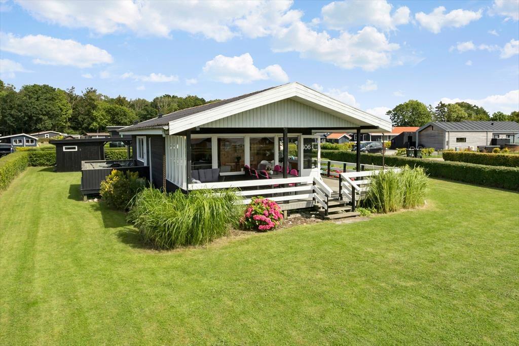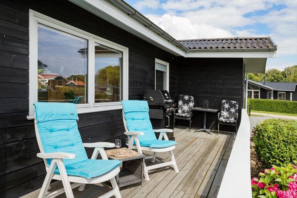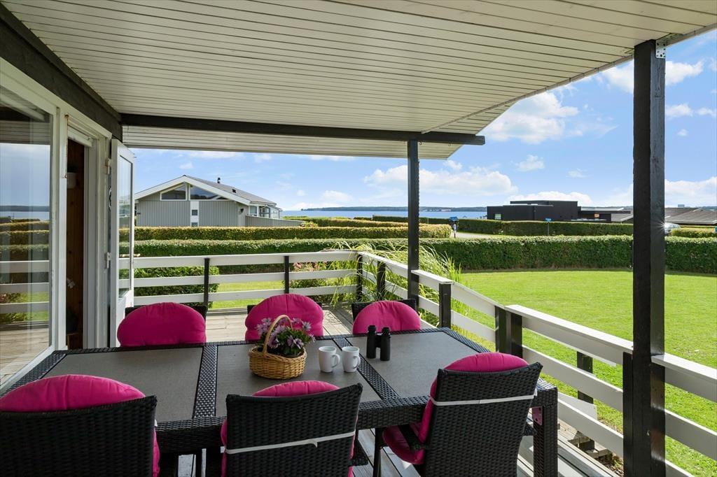 Udendørsområdet byder på en skøn terrasse, hvorfra du kan nyde den fantastiske udsigt med havkig. Den store have med en rummelig græsplæne er ideel til leg, spil og solbadning. Du kan slappe af i de komfortable solstole på terrassen og lade hverdagens stress forsvinde. Terrassen giver dig mulighed for at nyde udsigten ned til vandet. Ved ankomst kan bilen parkeres i indkørslen, der ligger lige op ad huset, så du kan komme tørskoet indenfor. Her er der plads til at nyde livet og den friske luft i fulde drag.