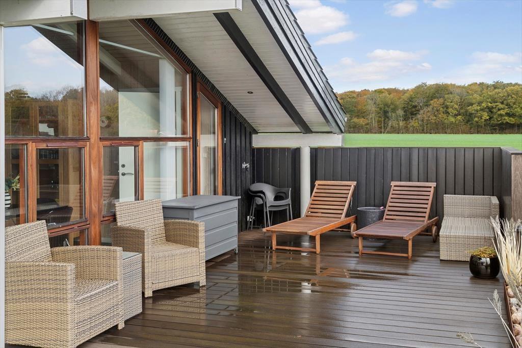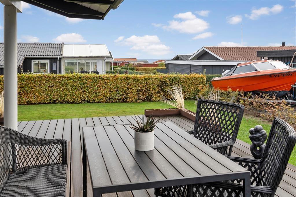 Udendørsområdet byder på en skøn terrasse, hvorfra du kan nyde den fantastiske udsigt med havkig. Den store have med en rummelig græsplæne er ideel til leg, spil og solbadning. Du kan slappe af i de komfortable solstole på terrassen og lade hverdagens stress forsvinde. Terrassen giver dig mulighed for at nyde udsigten ned til vandet. Ved ankomst kan bilen parkeres i indkørslen, der ligger lige op ad huset, så du kan komme tørskoet indenfor. Her er der plads til at nyde livet og den friske luft i fulde drag.