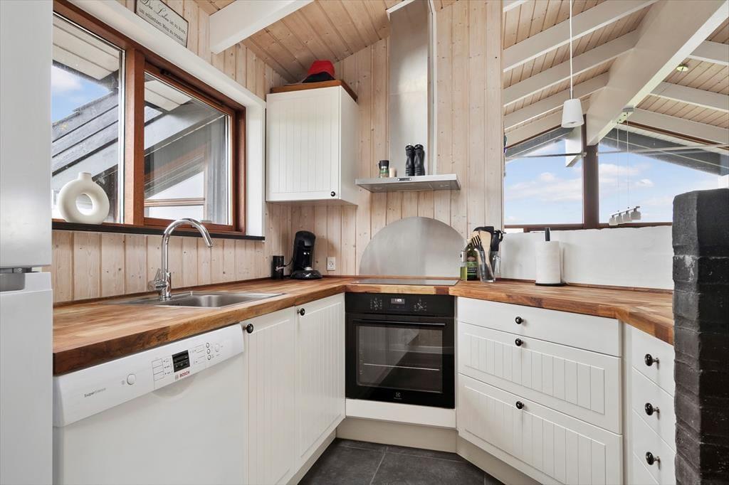 Vi byder velkommen til dette sommerhus i skøn sommerhusstil med havkig. Her kan en familie på op til 6 personer nyde en dejlig ferie i gode rammer. Det moderne køkken har en god størrelse og indeholder alt det nødvendige til ferien, inklusive opvaskemaskine. Køkkenet giver jer masser af plads til at tilberede feriens måltider og har direkte forbindelse til den store og åbne stue, hvor der både er spiseafdeling og et hyggeligt sofahjørne. Fra stuen er der udgang til den delvist overdækkede terrasse, hvor I kan tilbringe mange hyggelige timer med brætspil eller gode samtaler.