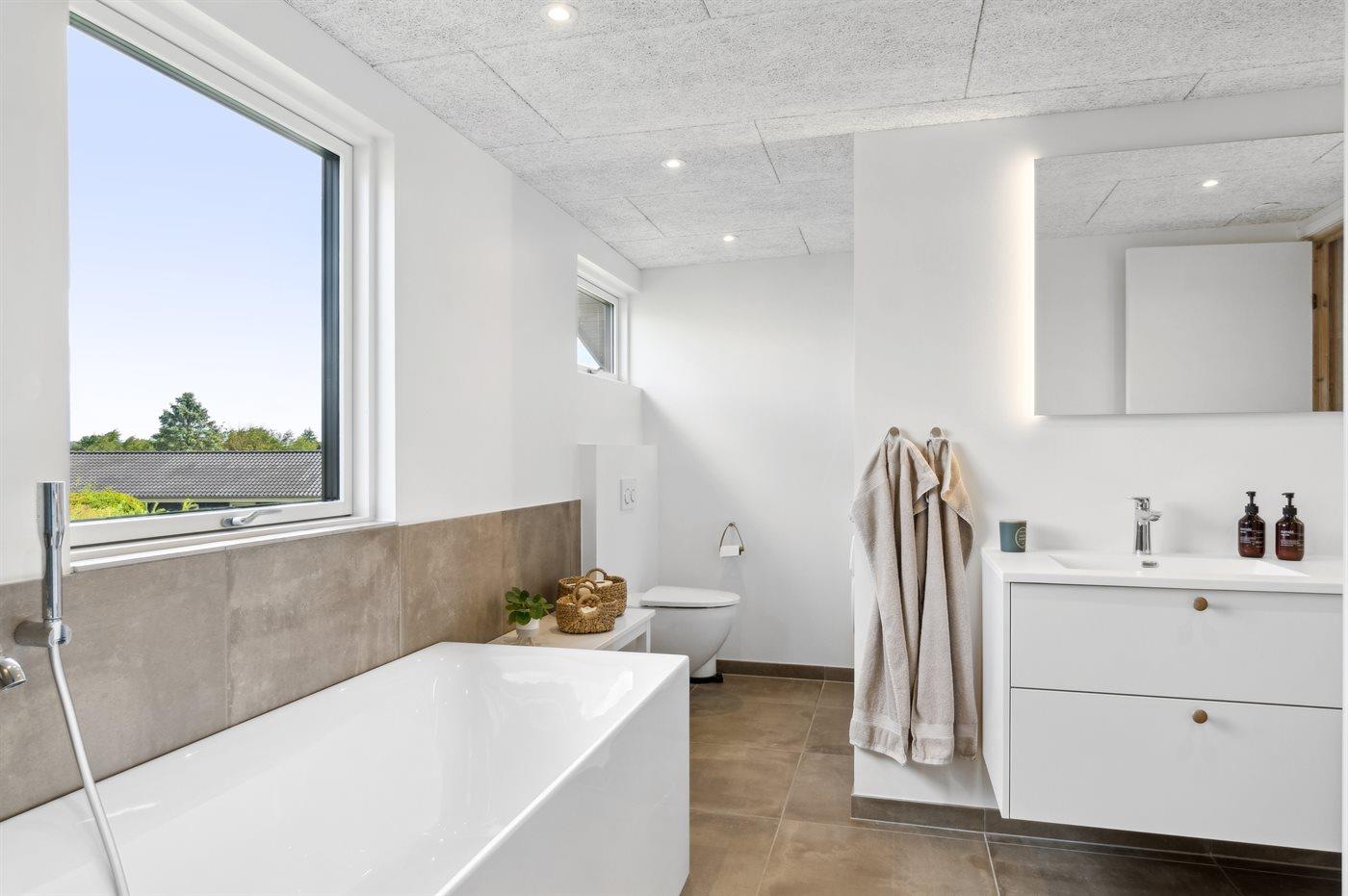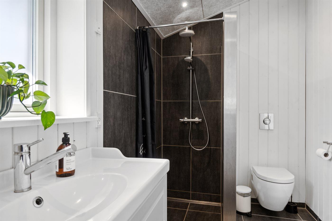 Der er 2 badeværelser med bruseniche og 2 toiletter. Der er gulvvarme på 2 badeværelser.. Badekar. I saunaen er der mulighed for afslapning.