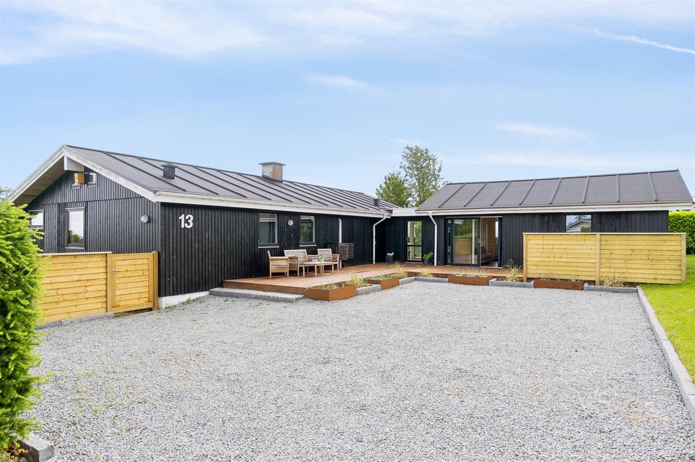 Ferieboligen er beliggende på en 1313 m² stor havegrund. Grunden er indhegnet. Der er 100 m til havet. Nærmeste forretning er beliggende i en afstand af 500 m. Til ferieboligen hører åbent terrasseareal. Trampolin. Fodboldmål. Grill til rådighed. Parkering ved ferieboligen.