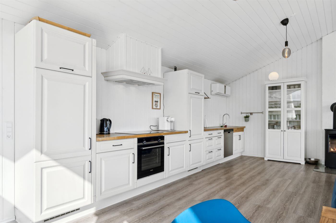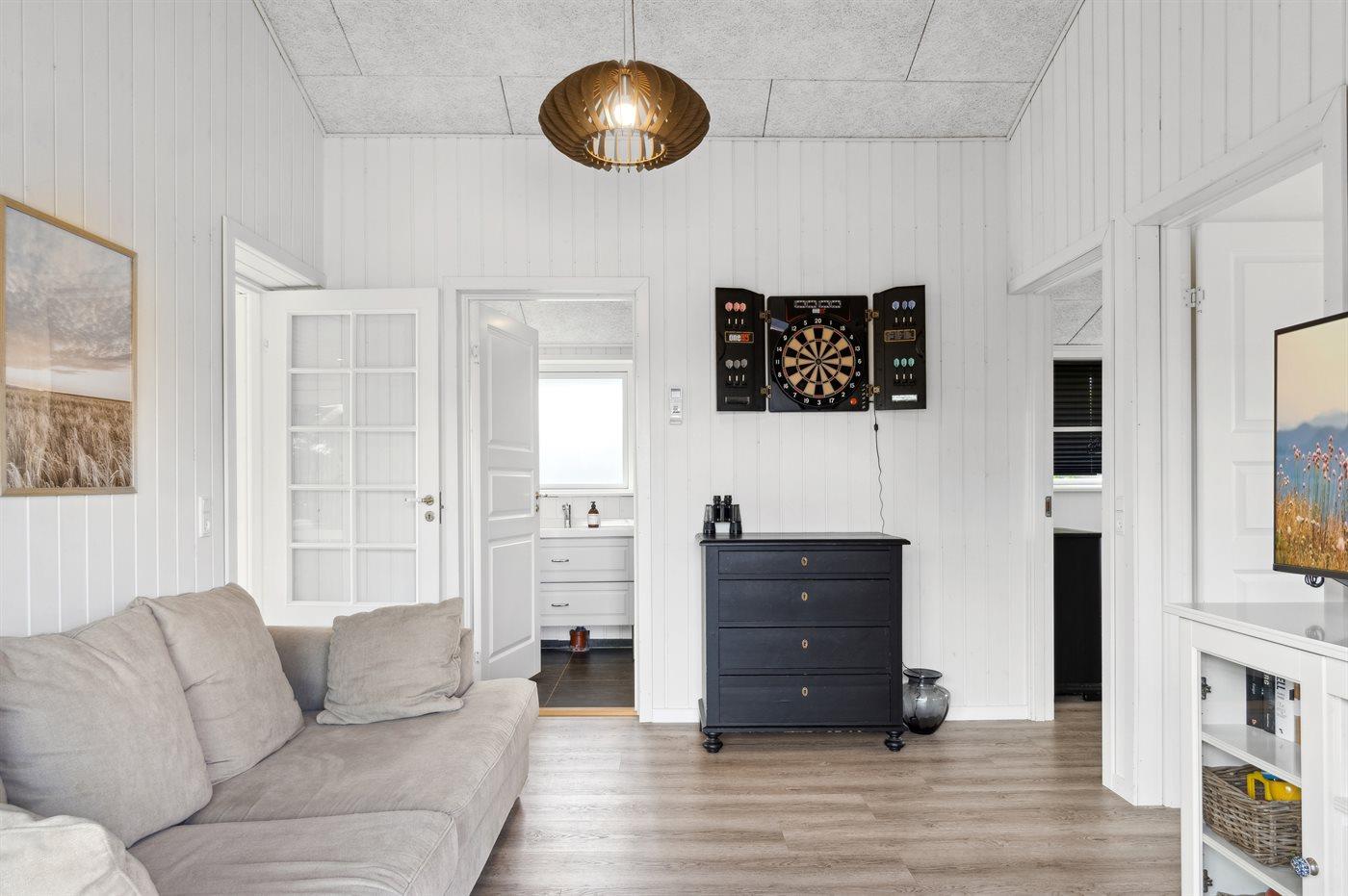Indvendig fremstår sommerhuset i rigtig fin stand og indretningen er lyst og moderne med en rigtig god planløsning, som passer godt til f.eks. en eller to familier med børn eller man kan invitere bedsteforældrene med på ferie. Alt i alt et sommerhus, der byder på de bedste betingelser for en dejlig ferie.