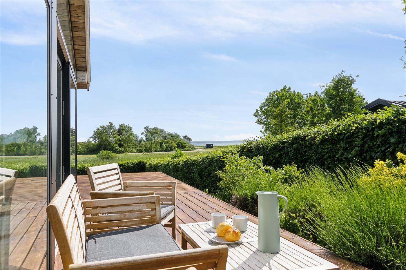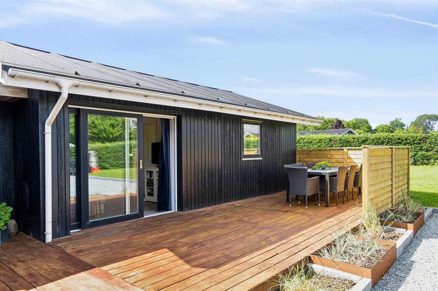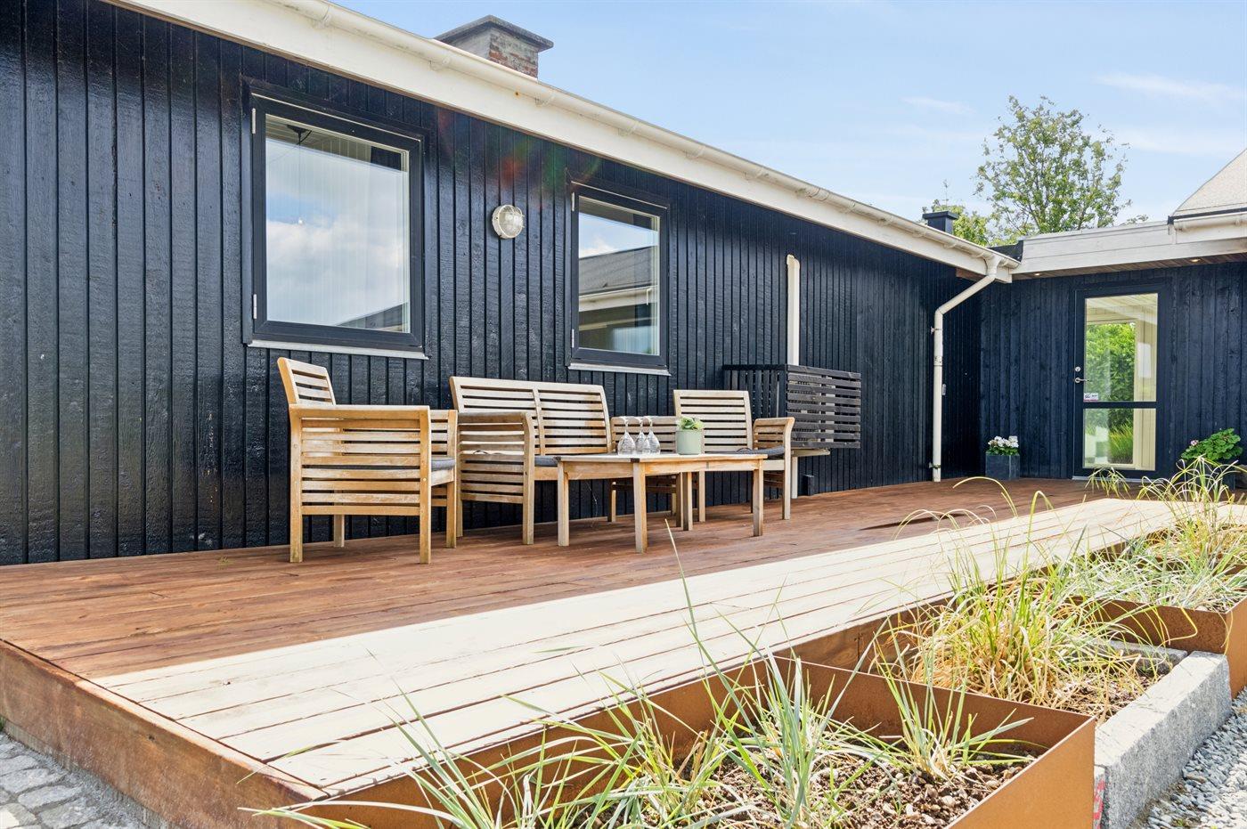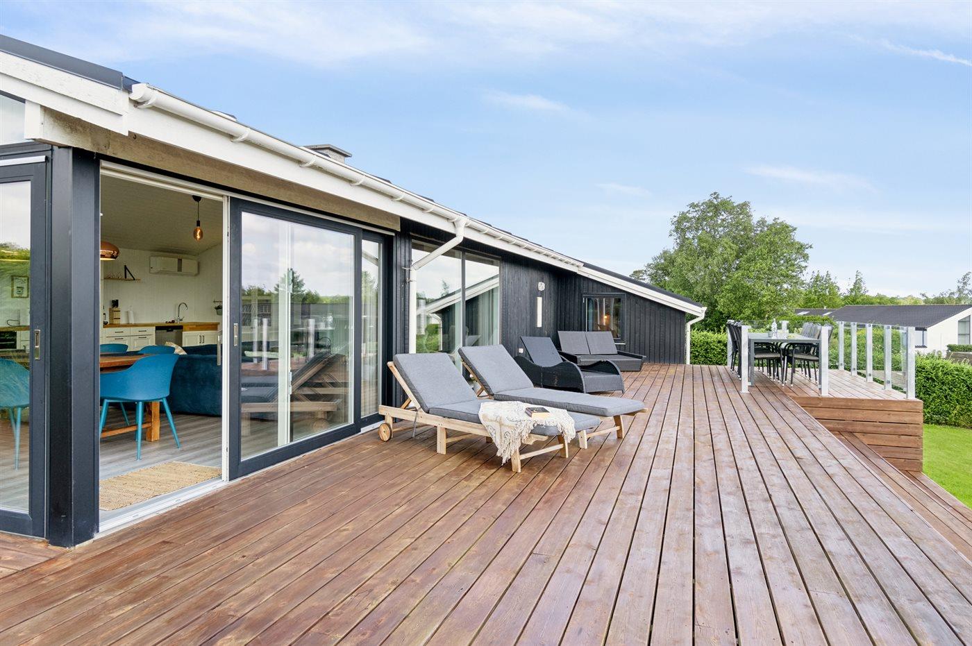 Sommerhuset byder på dejlige terrassearealer, som ligger på begge sider af huset, således det altid er muligt at finde et læfyldt hjørne, hvor man kan nyde solen.